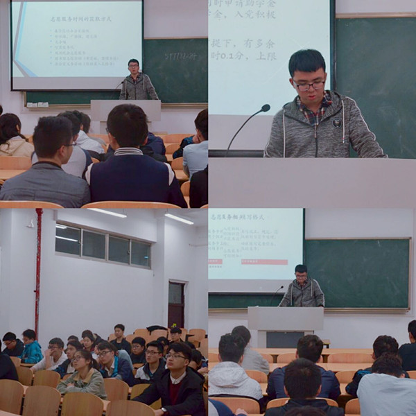 为了让大家更加了解志愿服务的主要内容以及志愿服务卡的使用方法,智控学院生活部于2018年4月13日下午7:30在3106教室召开了志愿服务章程大会,大会由生活部干事徐广路主持。部分入党积极分子以及申请助学金的同学参加了本次会议。