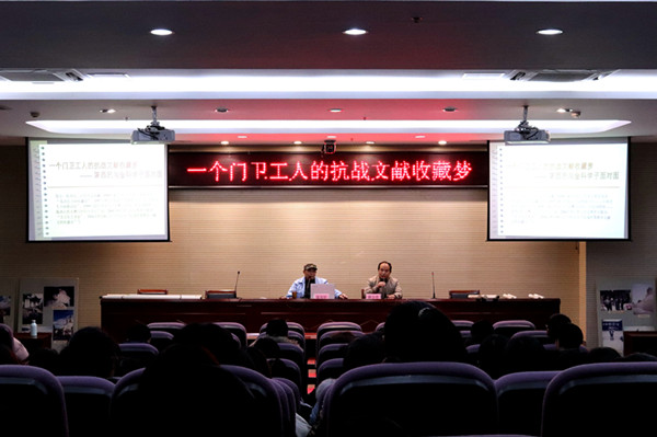 为了活跃校园文化氛围,12月28日下午2:00,在幕府校区图书馆报告厅举办了“一个门卫工人的抗战文献收藏梦”主题讲座活动,本次活动特邀著名收藏家陈西民,与金科学子面对面。人文学院院长顾金亮与各班级近百名同学参加了此次活动。