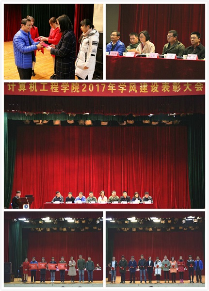 为鼓励学生积极进取,奋发向上,2017年12月27日下午1:30计算机工程学院于大学生活动中心召开学风建设表彰大会。党委常委、副校长倪杰,学生工作部(处)部(处)长周骏,学院党总支书记田祥宏、副院长樊静、王池社、苏守宝、企业代表、系主任、教师代表、辅导员、班主任、15、16、17级全体学生出席了会议,院党总支副书记骆德军主持会议。
