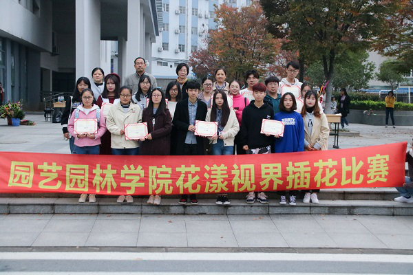 为丰富学生的校园文化生活,园艺园林学院春韵插画社于11月11日下午1:30,在图书馆门口举办“花漾视界”插花比赛。本次比赛特别邀请夏重立、刘薇萍、甘黎明、孙淑萍等老师作为评委。