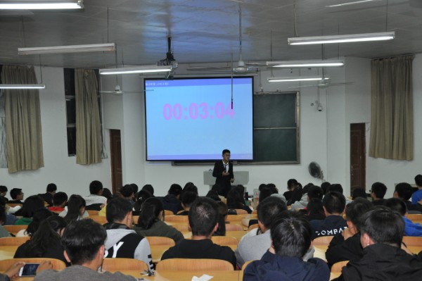 为了锻炼同学们的口才和思辨能力,增强学生的综合素能力,10月26日,在教学楼8300室举行“超级演说家”演讲比赛。辅导员邹文荣、梁咪咪,院团支部副书记黄振辉、院学生会主席杨军、上届冠军谢森出席此次本赛并应邀担任评委。本次比赛共六位选手参赛。