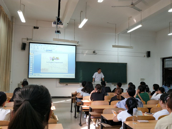 9月29日上午九点,伴随着初秋清晨的微微凉爽,外国语学院张志刚副院长和英语教研室主任李凤老师在5109教室,给2018级新生们开展爱校教育和专业认知教育。