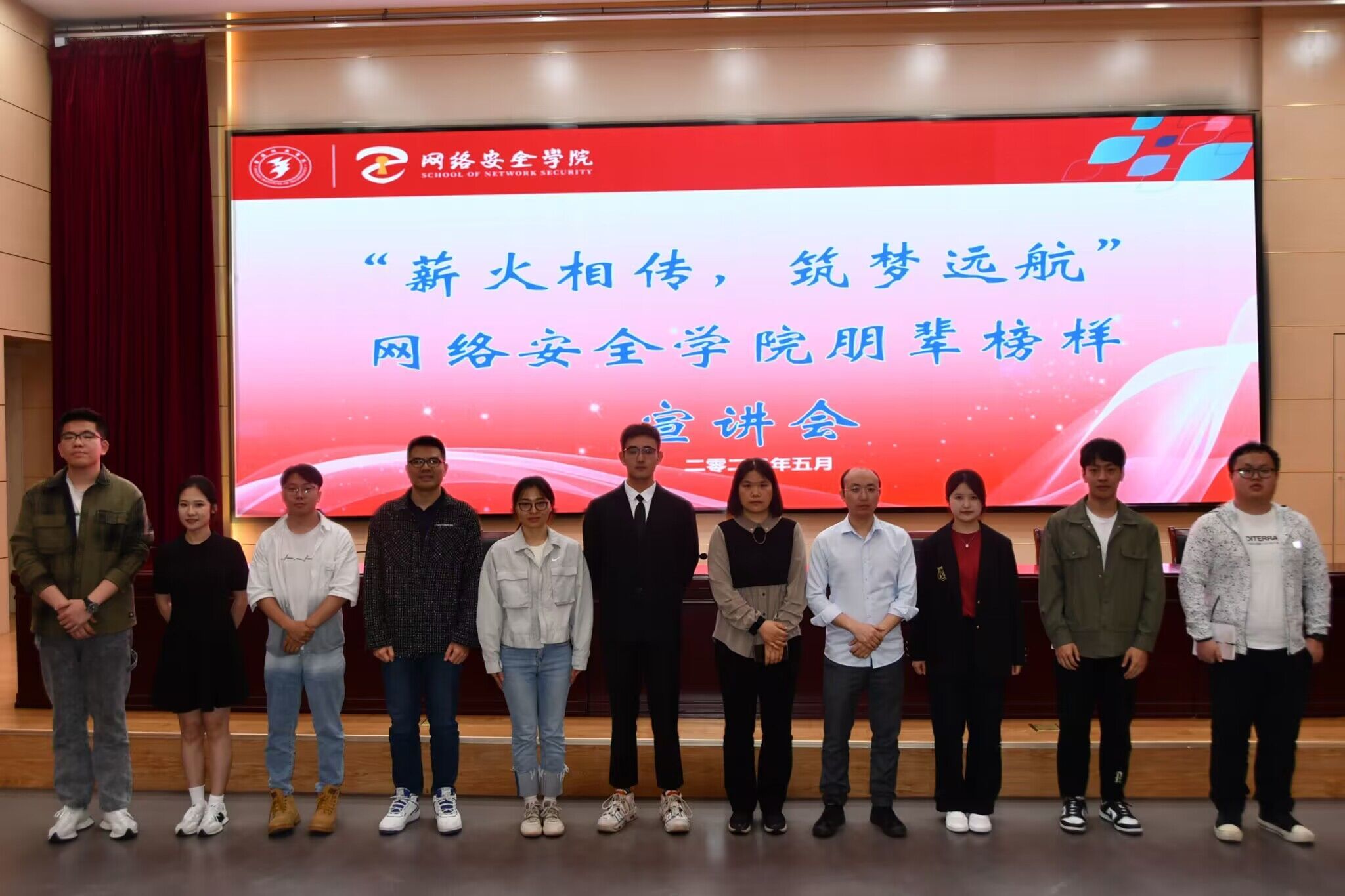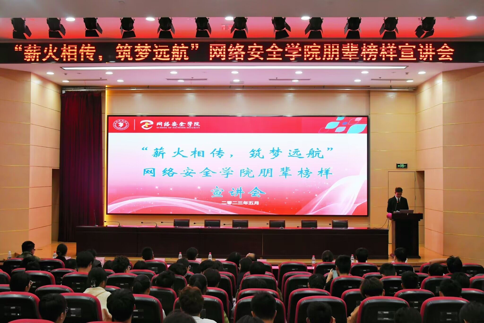 为让同学们更好地了解自己的专业就业方向,明晰自己的职业生涯规划,网络安全学院于5月9日晚在科技楼报告厅组织开展了朋辈榜样宣讲会活动。本次宣讲会旨在为低年级的同学们提供一个与优秀学长学姐交流的平台,汲取到更多宝贵的经验,明确自己的目标,并制定合理的计划。信息安全系主任吴秋玲、网络空间安全系副主任马乐军以及全体辅导员出席本次宣讲会。