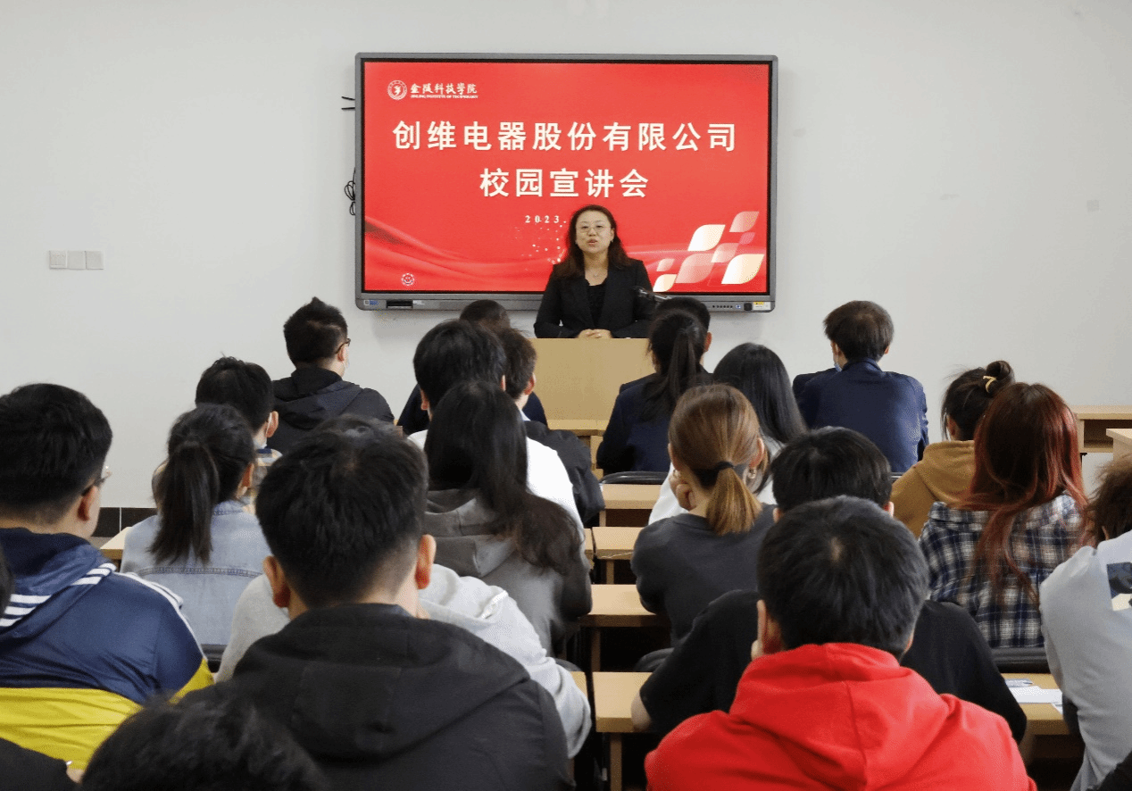 为更好地拓宽毕业生就业渠道,5月10日下午,机电工程学院举办创维电器股份有限公司校园专场招聘暨“访企拓岗促就业”交流活动。创维电器人力资源部经理刘英元一行四人、校人力资源处及机电工程学院领导、毕业班辅导员、70余名毕业生参加招聘及交流活动。