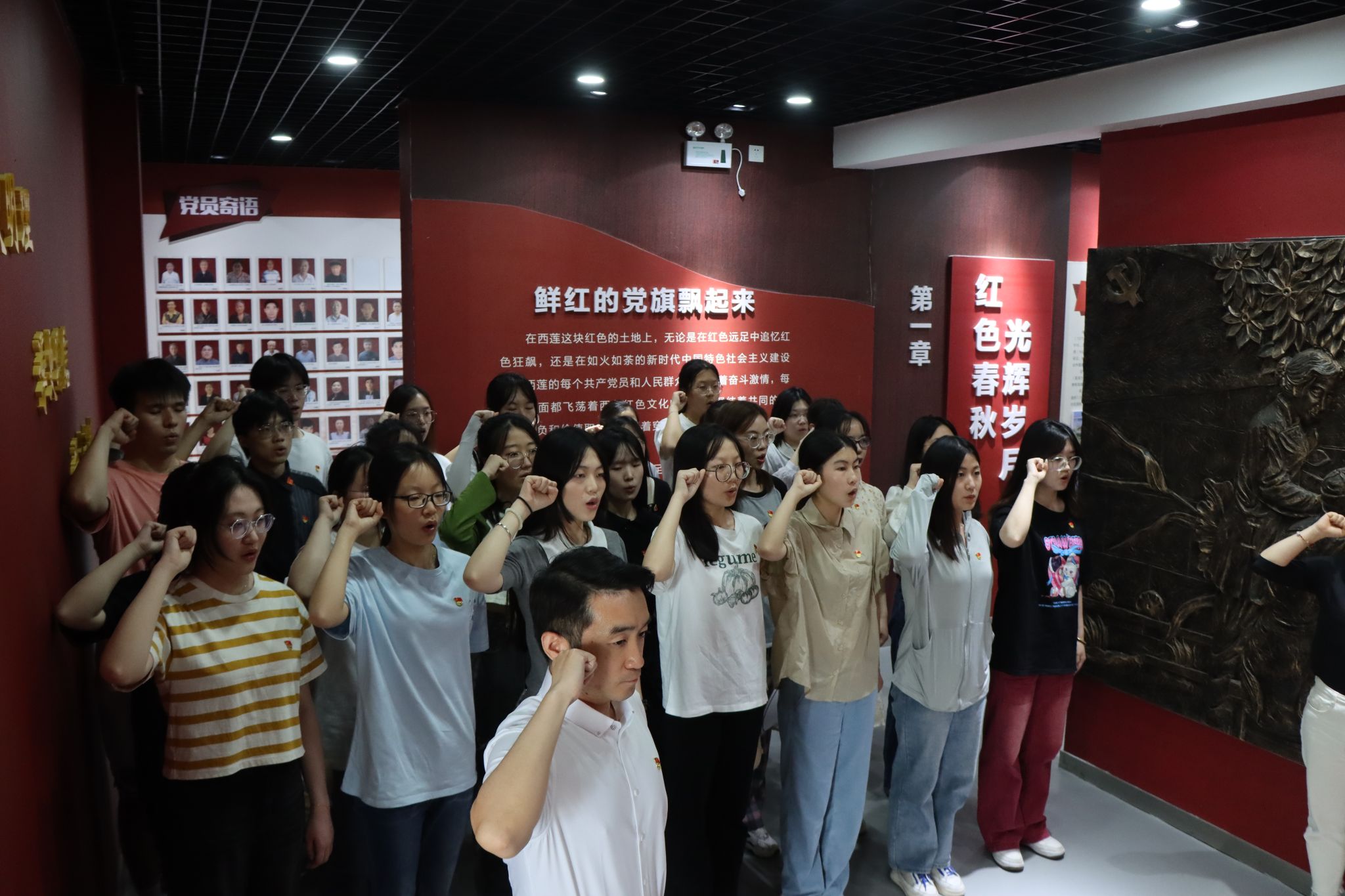 揭牌仪式后,还同步启动了新发展党员集体入党宣誓和沧溪村古道环境治理志愿服务活动。依托高淳区第一个党支部—中共月亮湖党支部建设而成的西莲村党史陈列室,新发展党员站在鲜红的党旗面前庄严宣誓。在沧溪村古道,同学们手持垃圾捡拾器、水桶等工具认真清理街道死角、地面垃圾、堆积杂物、枯枝落叶,并把收集的垃圾分类处理。
