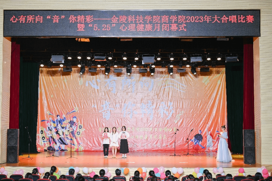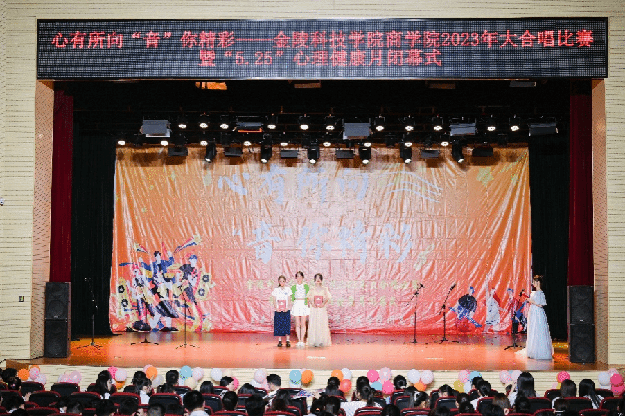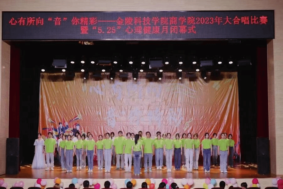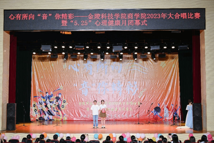 2023年5月20日晚,“心有所向,‘音’你精彩”商学院2023年大合唱比赛暨“5.25”心理健康月闭幕式,于大学生活动中心千人剧场举行。商学院党委副书记孙亮、学工办主任顾磊、学工办副主任兼团总支书记徐冰洁、辅导员郑文杰、张晨、李欢欢、沈洁担任本次大赛的评委,22级部分班主任和全体学生参加本次比赛。本次比赛由商学院团总支学生会主办,学生会文艺部、心理协会承办。