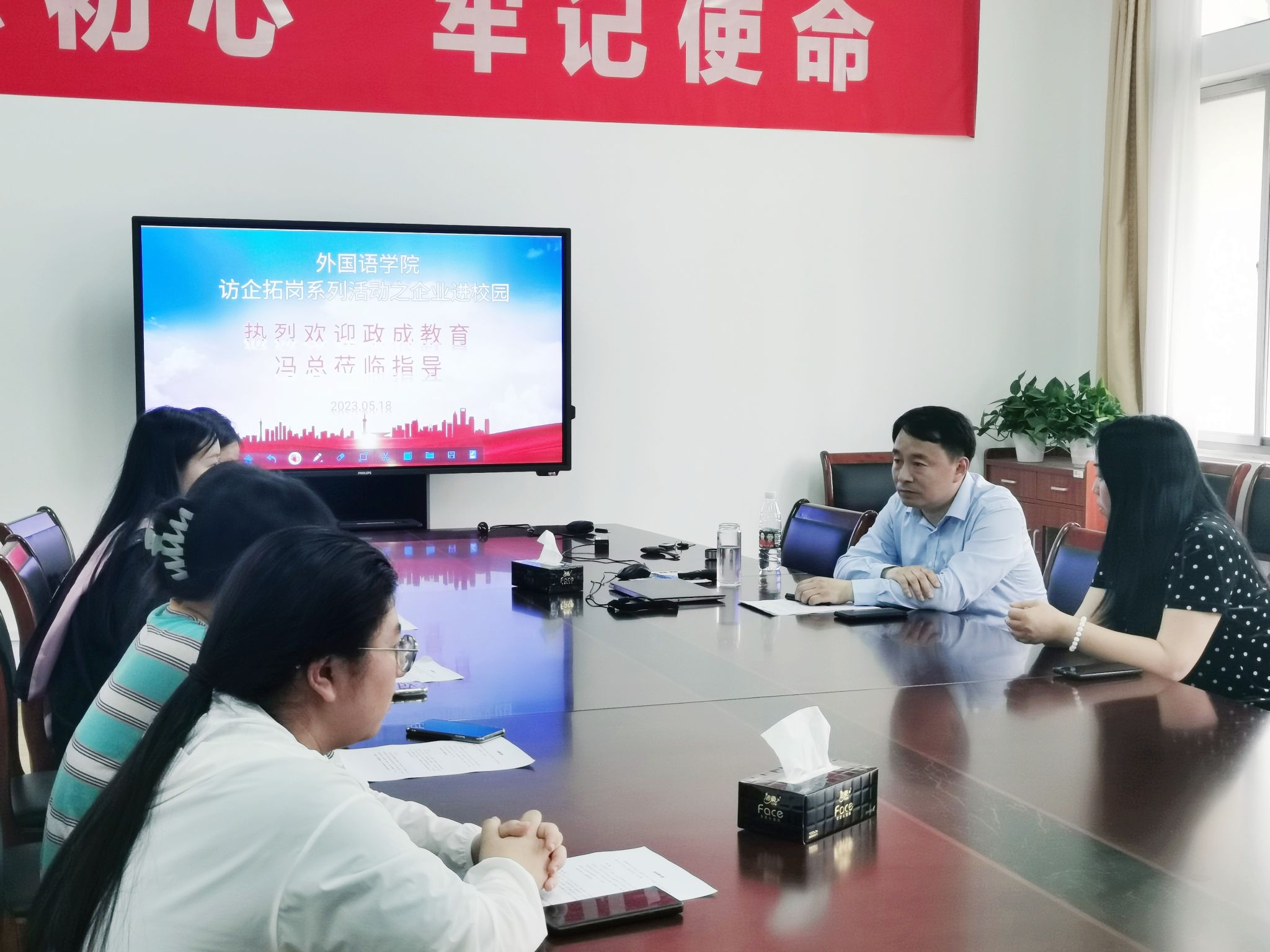5月18日下午,外国语学院邀请南京政成教育科技有限公司总经理冯永恒来校,为报考公务员或事业编制的2023届毕业生进行一对一辅导。学院党总支部书记李星、毕业班辅导员杨婷及6名毕业生参加了活动。
