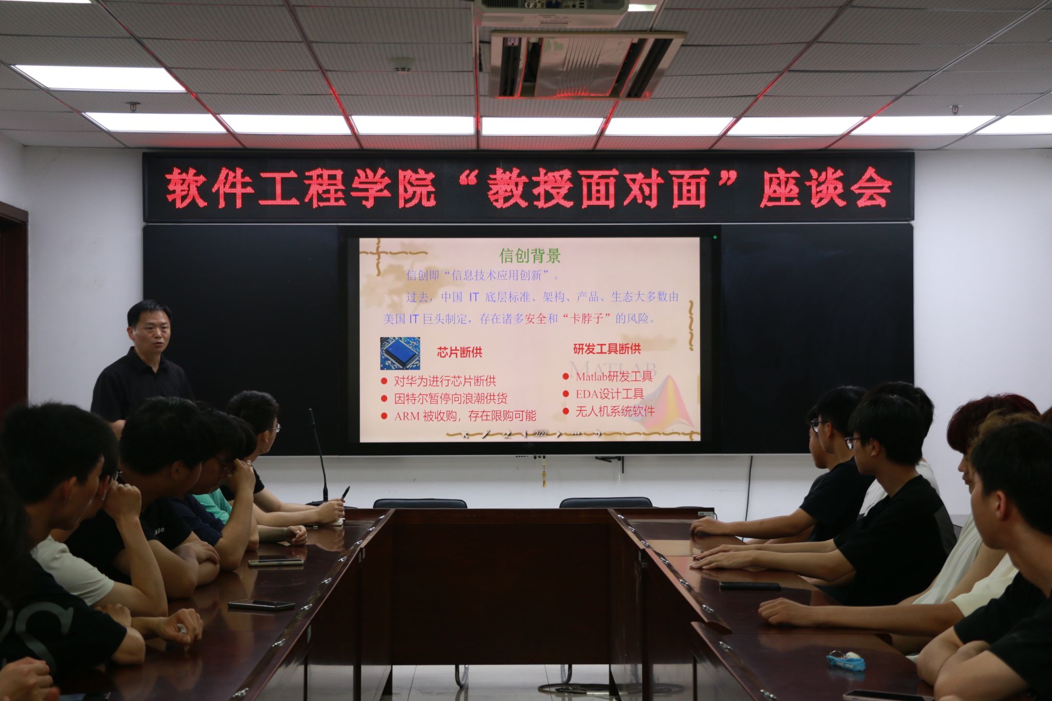 软件工程学院为加强师生互动,提高教学质量,于5月19日举行了教授面对面活动。软件工程(嵌入式培养)系主任王智钢出席本次信息安全讲座。