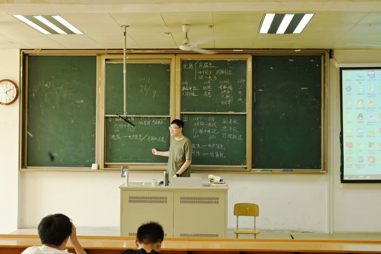 李常鹏学长首先上台发言,他主要介绍了考研的经验、要点,以及自己对找工作,笔试、面试的看法、经验,教同学们如何制作一份有用的简历。然后,于武巧学姐上台发言,主要介绍了自己如何跨专业考入本校研究生。接着,高泓学长主要介绍他成功进入中国联通公司的经历,重点分析了央企考试流程与招聘初筛要求、笔试内容和面试过程,提醒学弟学妹要树立忧患意识,做有目标,有理想的新青年。最后,牛清玮学长凭借对公务员的理解以及自己考上选调生的经验,向同学们介绍了国考、省考的区别、相通之处,考公方向的选择,各种公务员考试的重点、题目类型等等。