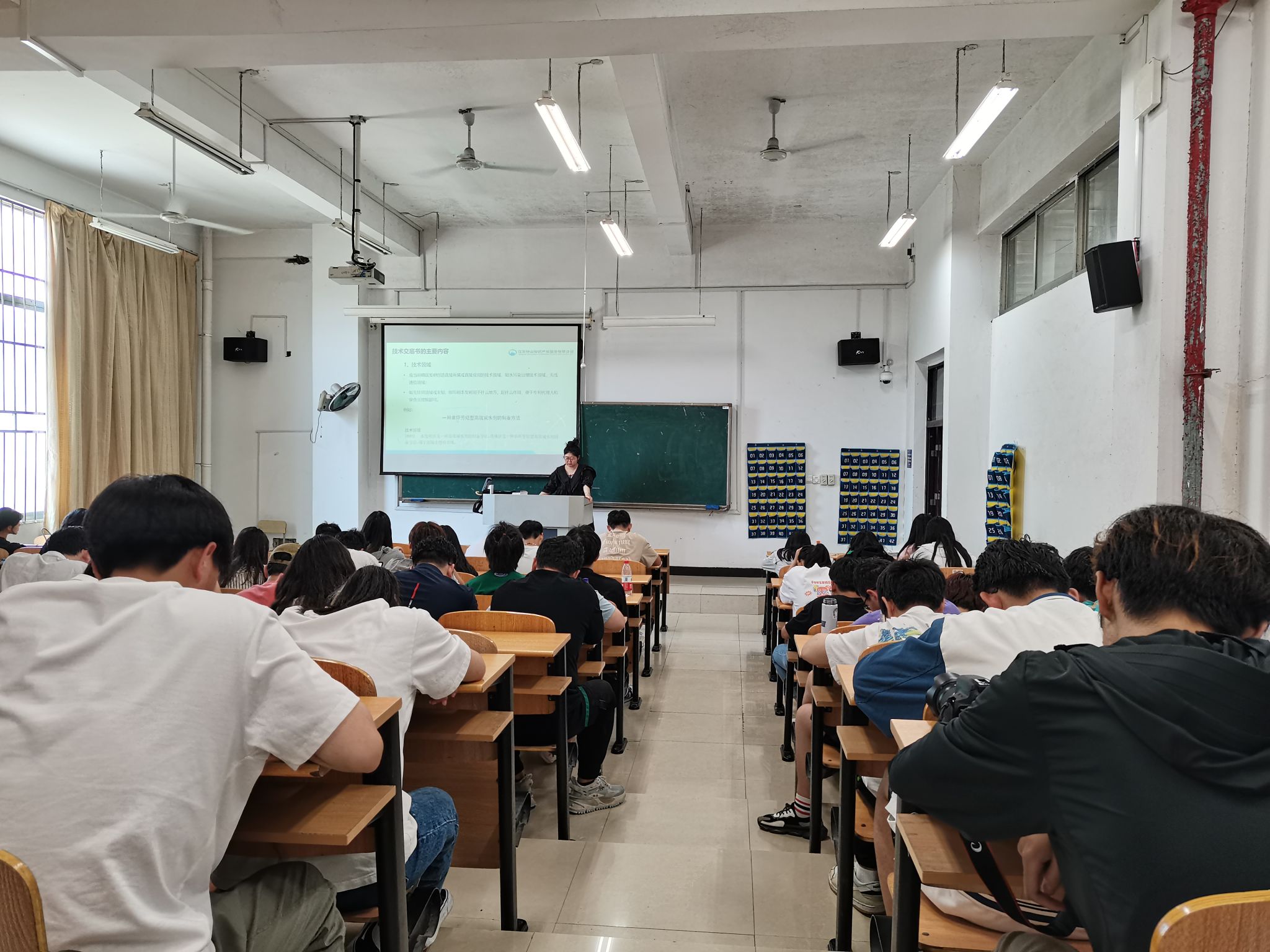 讲座主要围绕专利基础知识、技术交底书的撰写展开。刘佳慧介绍了专利的基础内容,包括发明、实用、外观的定义及需要满足的三性要求;重点在技术交底书的撰写中,结合结构、装置、材料等多个领域的具体案例,详细介绍了技术交底书各个组成部分需要注意的事项。