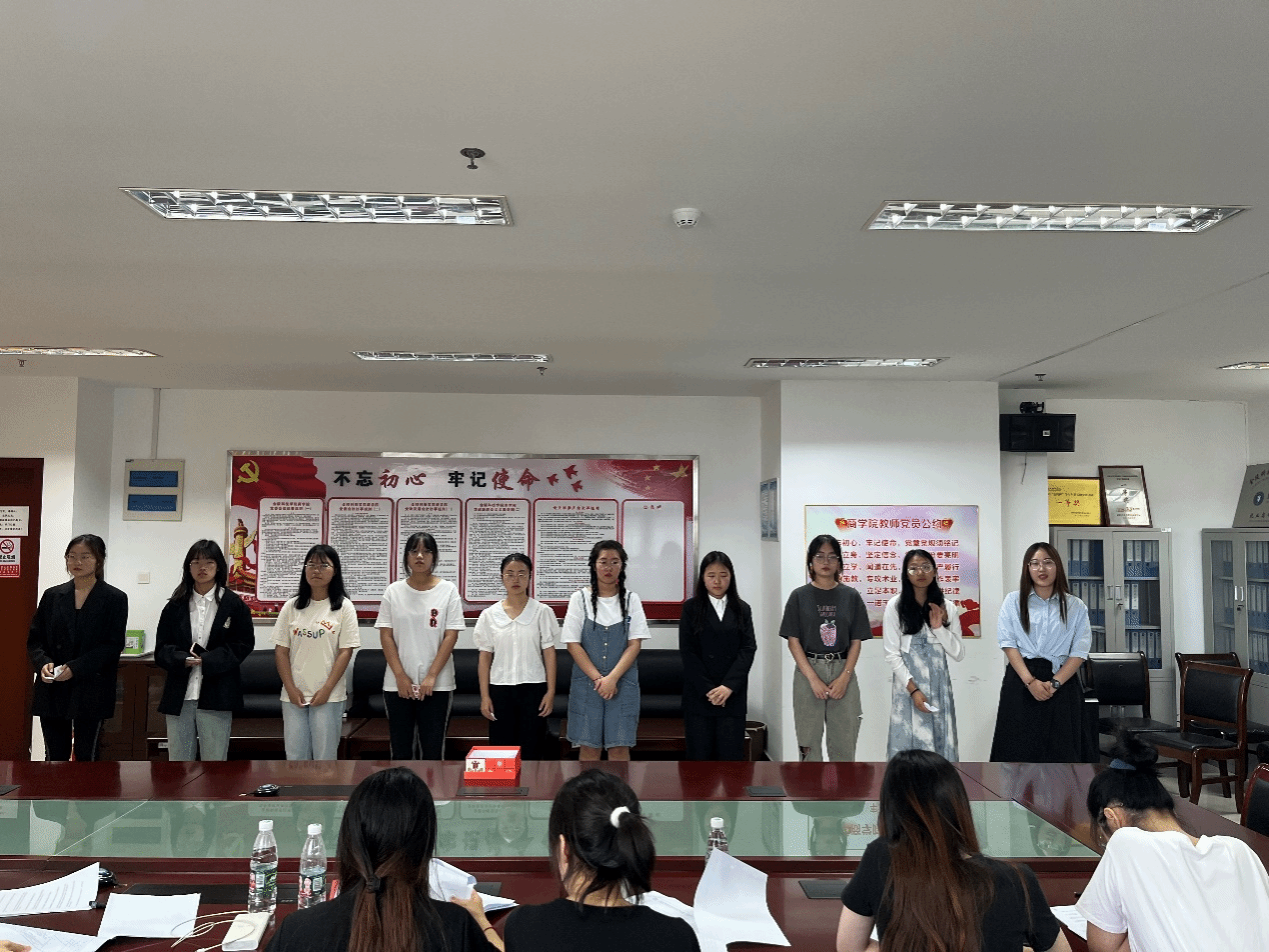面试开始,由商学院团总支书记徐冰洁老师介绍选拔程序、选聘标准和注意事项,本次面试按照专业顺序分组进行,每组选手依次演讲,随后抽题作答,最后老师对相关同学进行提问。