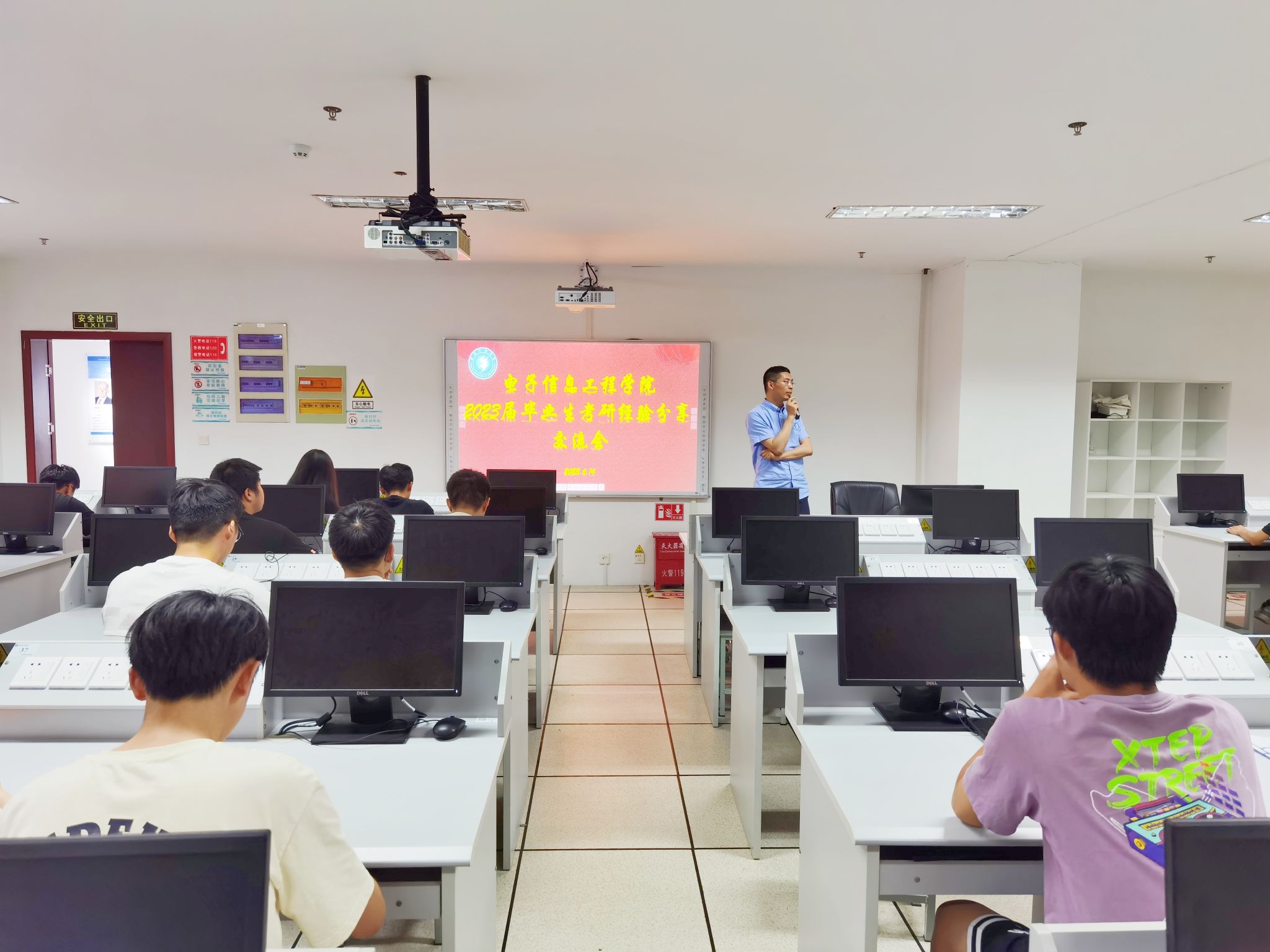 为帮助学院学生明晰考研规划的重要意义,助力电信学子考研成功上岸,近日,电子信息工程学院在科技楼4号楼311举办了考研经验分享交流会。苏杰、黄继源、于文光、刘雨桐四位19级学生于现场进行了考研经验分享,学院党委副书记吴有龙、辅导员叶晴及部分学生代表参加了活动。