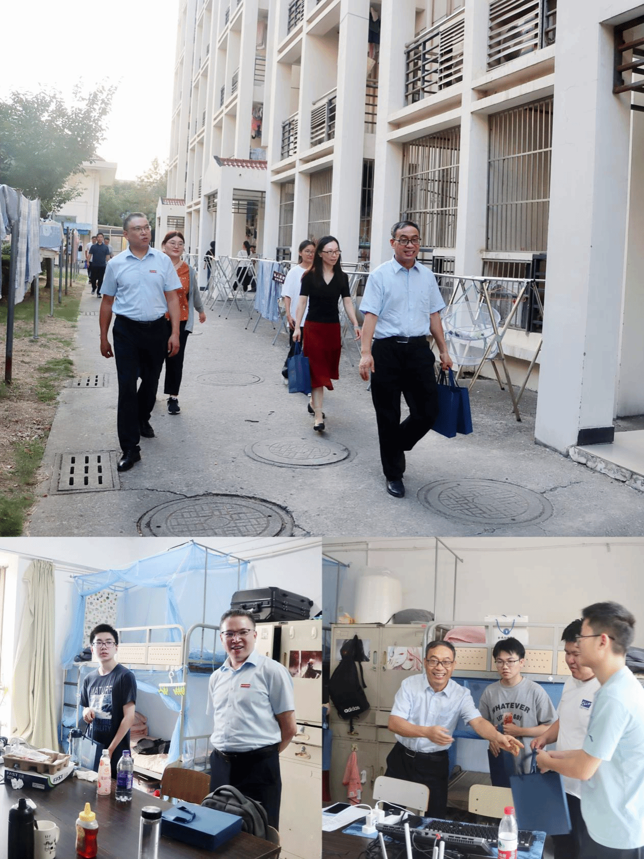 结识新友,成就新自我。为确保新生们在校园里迅速找到归属感,快速融入大学生活,新生全部报到后的当天下午,学院党总支部书记雍海龙、院长张国印、副院长刘平,带领数学系主任林洪伟、副主任李德浩以及新生班主任郑田田、辅导员孙宏等深入学生公寓,亲切慰问学院2023级新生。在学生宿舍里,学院领导给新生送上慰问品,与新生和家长们亲切交流,关注新生们的适应情况,并提醒同学们注意宿舍用电安全,谨防电信网络诈骗,提高独立生活学习和自我管理意识。院领导鼓励新生们要树立“以宿舍为家”的意识,互相团结友爱,互帮互助,共同营造一个文明和谐的宿舍生活环境,为即将开始的大学生涯打下坚实的基础。(采写人:孙宏 审稿人:雍海龙)