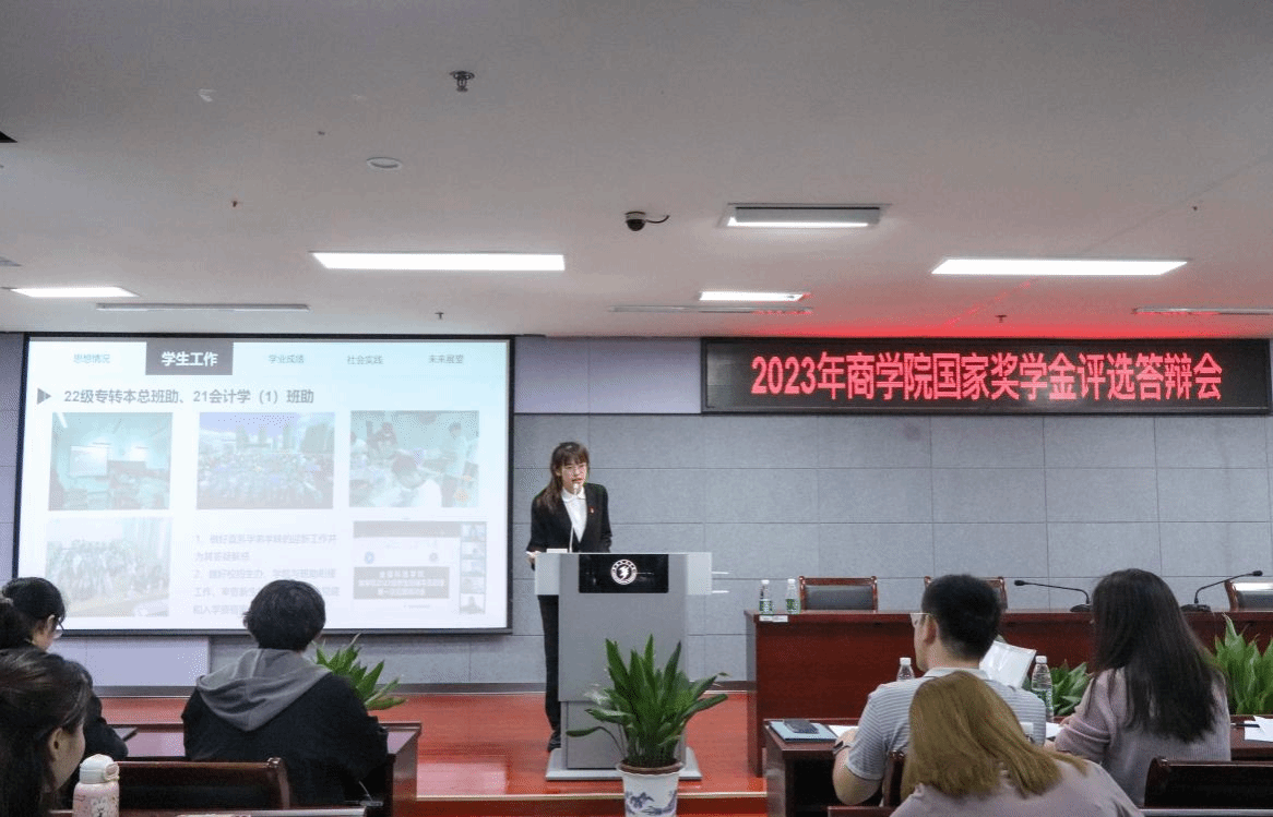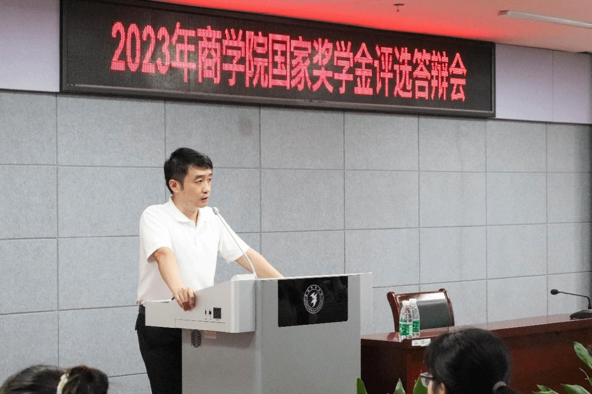 为了充分体现国家奖学金评选工作公平、公开、公正的原则,宣传落实国家资助育人政策,展示优秀学子风采,推动商学院学风建设,9月18日下午,2022-2023学年商学院国家奖学金评选答辩会在科技楼3号楼313教室举行。商学院党委副书记孙亮和学院辅导员作为评委参加了本次会议,学生代表100余人到场观摩。