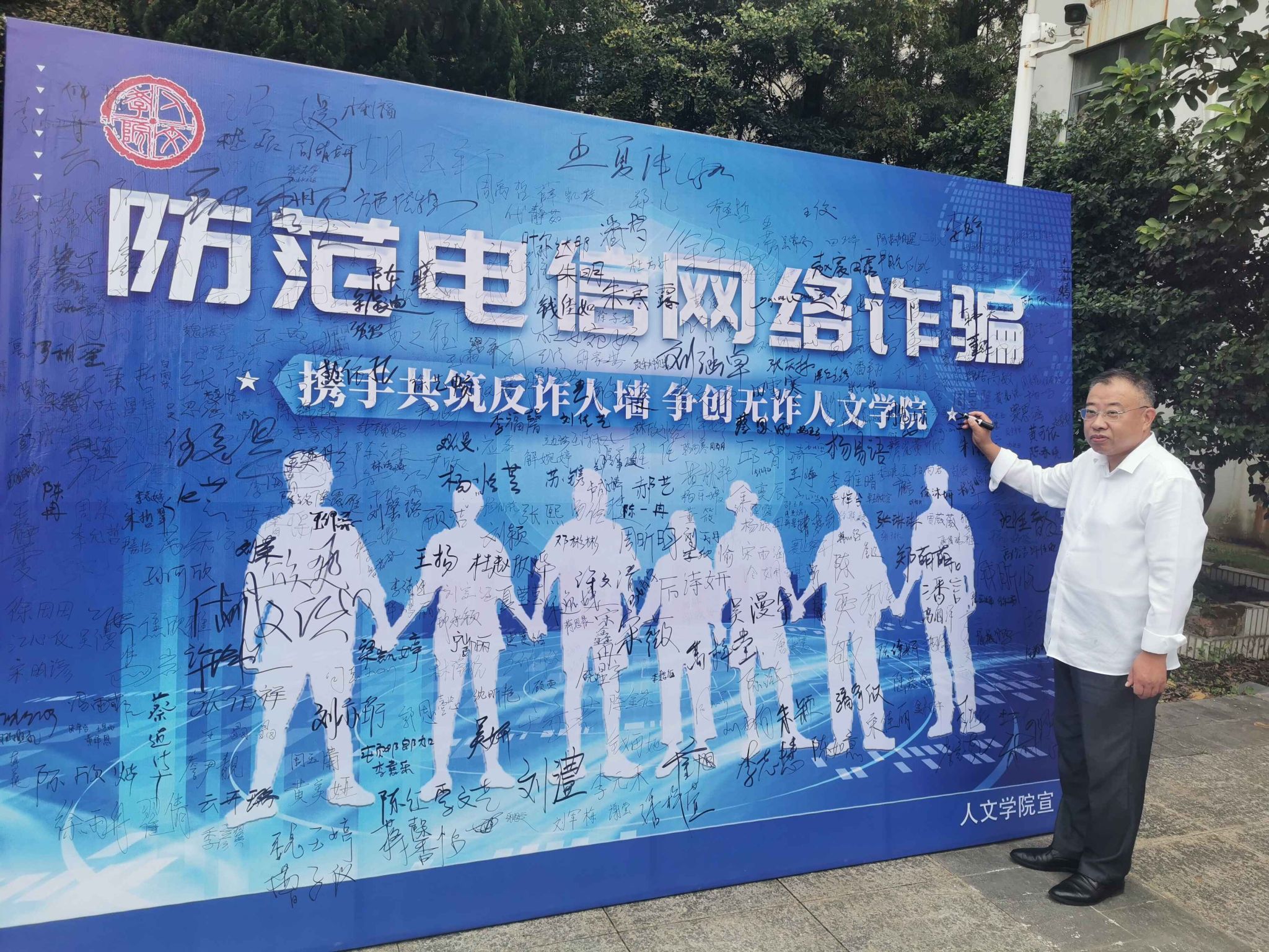 为切实提高校园防范电信网络诈骗安全意识,持续营造“人人识诈”的浓厚氛围。9月25日至9月27日,人文学院在崇文楼前组织开展了防范电信网络诈骗宣传活动。