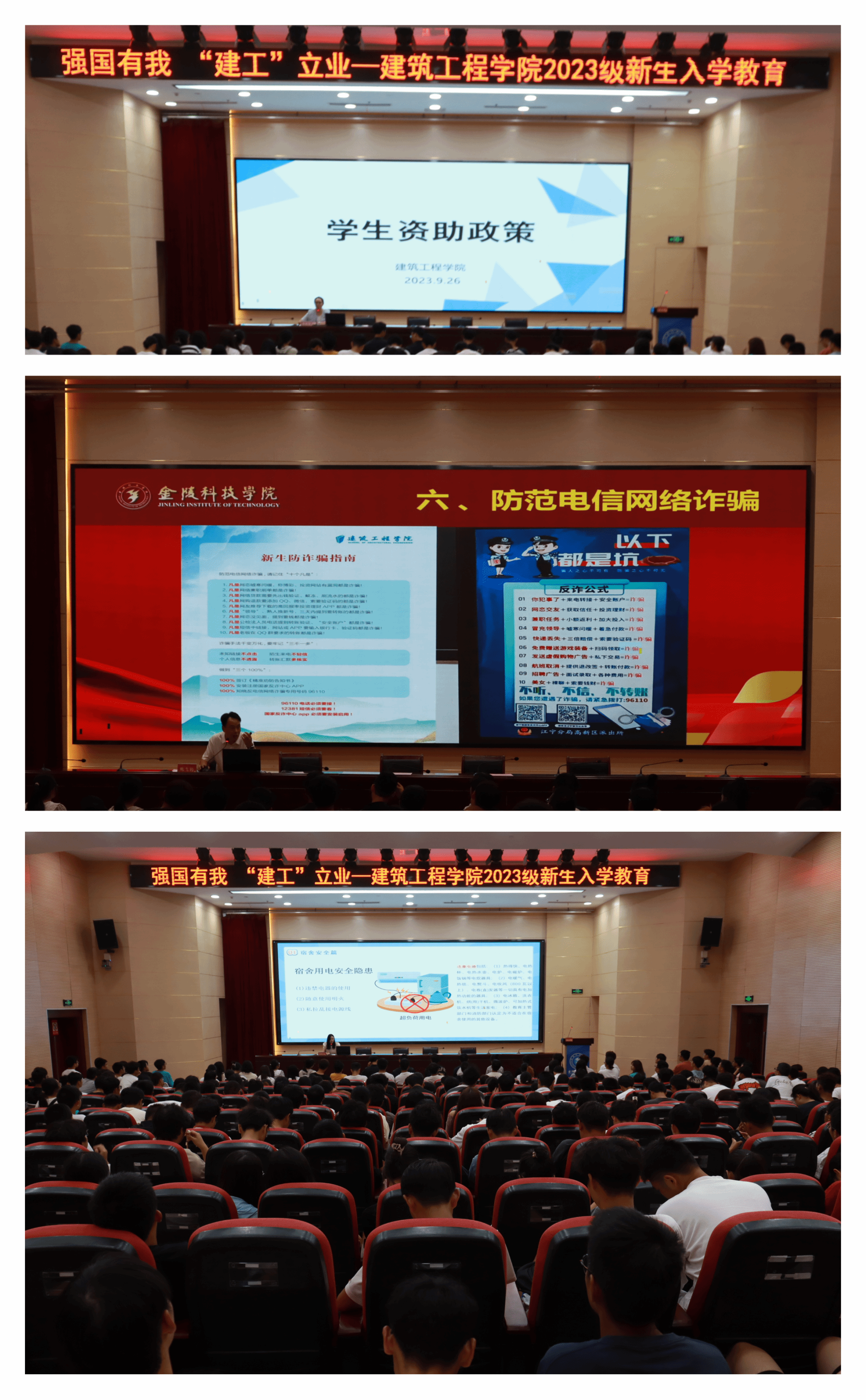 9月28日,建筑工程学院在科技楼报告厅开展2023级本科新生入学教育。建筑工程学院党委书记沈瑾、院长刘志峰、副院长梁献超、副院长黄冬辉,各系主任、新生班主任、全体辅导员、2023级全体本科新生参加。入学教育由学工办副主任鲍飞豹主持。