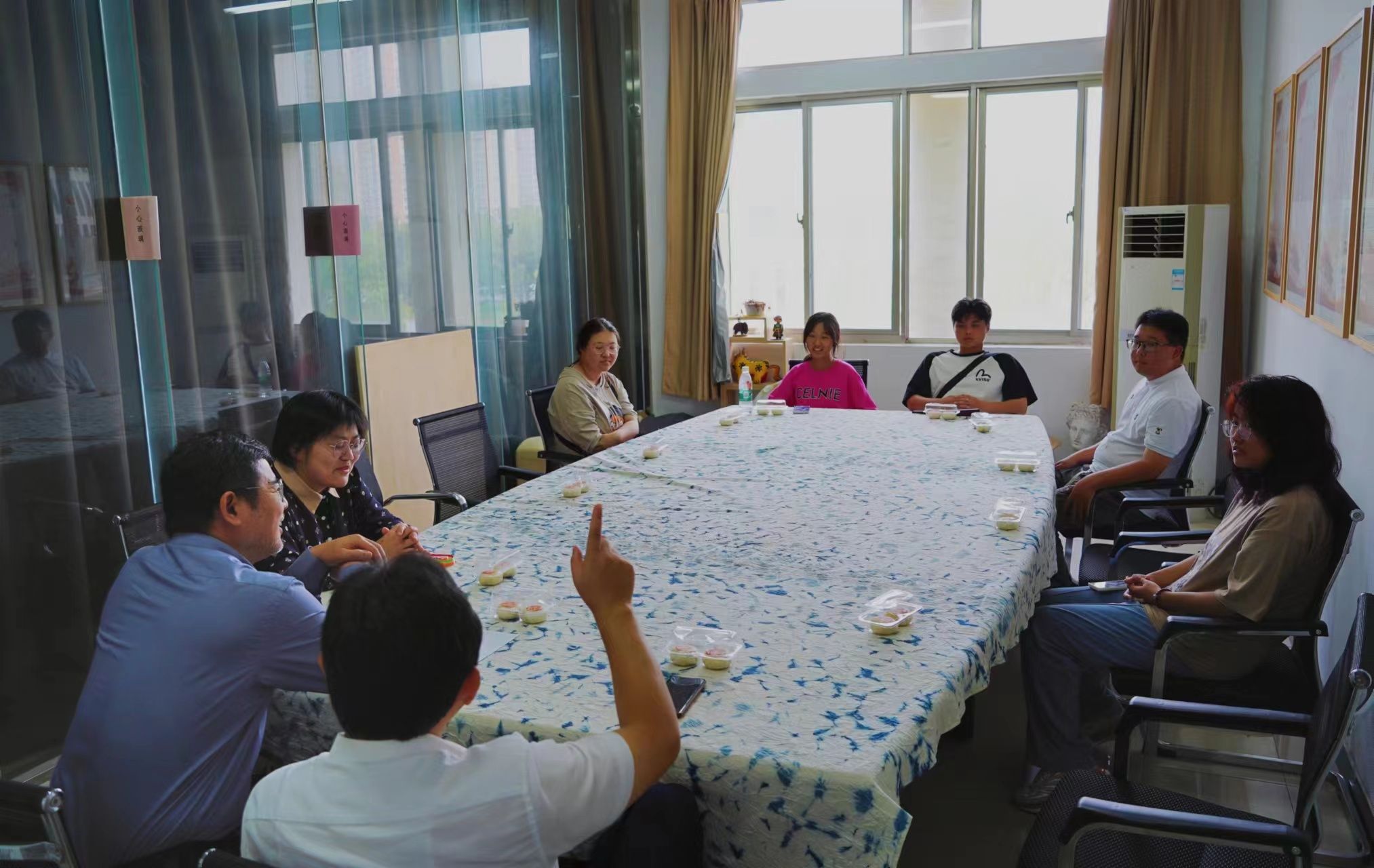 9月28日中午,艺术学院于6308举办2023级新生“情满中秋,共话未来”座谈会,师生齐聚一堂,畅谈未来规划,共度中秋佳节。艺术学院党委副书记鲍锐,副院长黄向群,学生工作办公室主任丛扬子和全体留校学生参会。