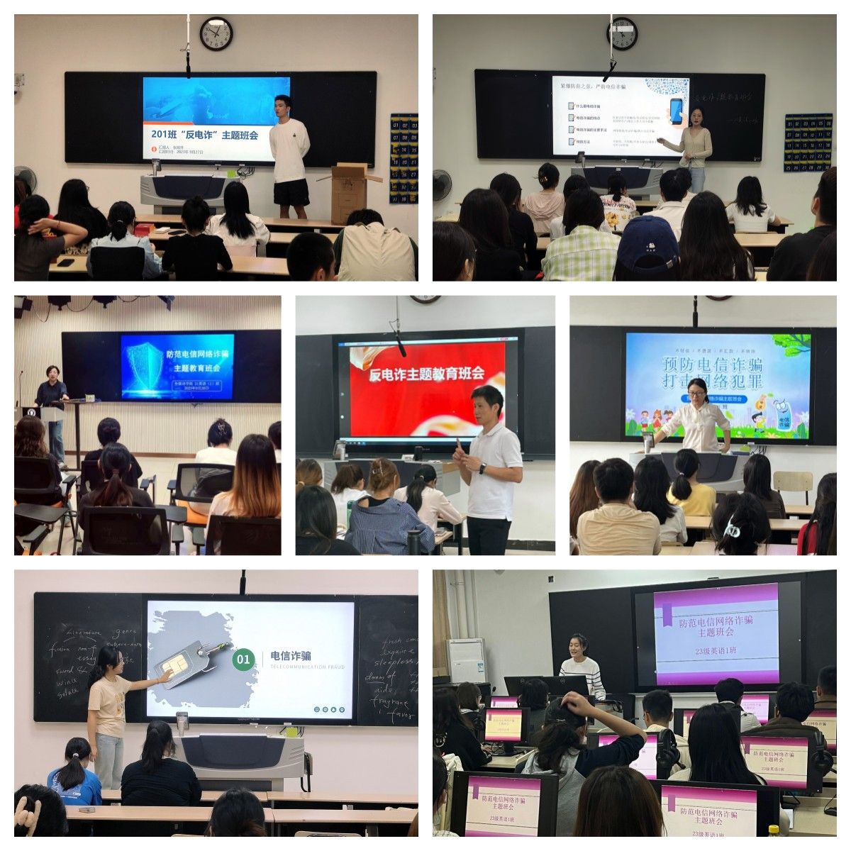 为进一步提高学生的识骗、防骗意识和能力,有效防范电信网络诈骗,9月至10月,外国语学院各班召开了“防范电信网络诈骗”主题班会。班会由各班班主任主持,学生覆盖率100%。