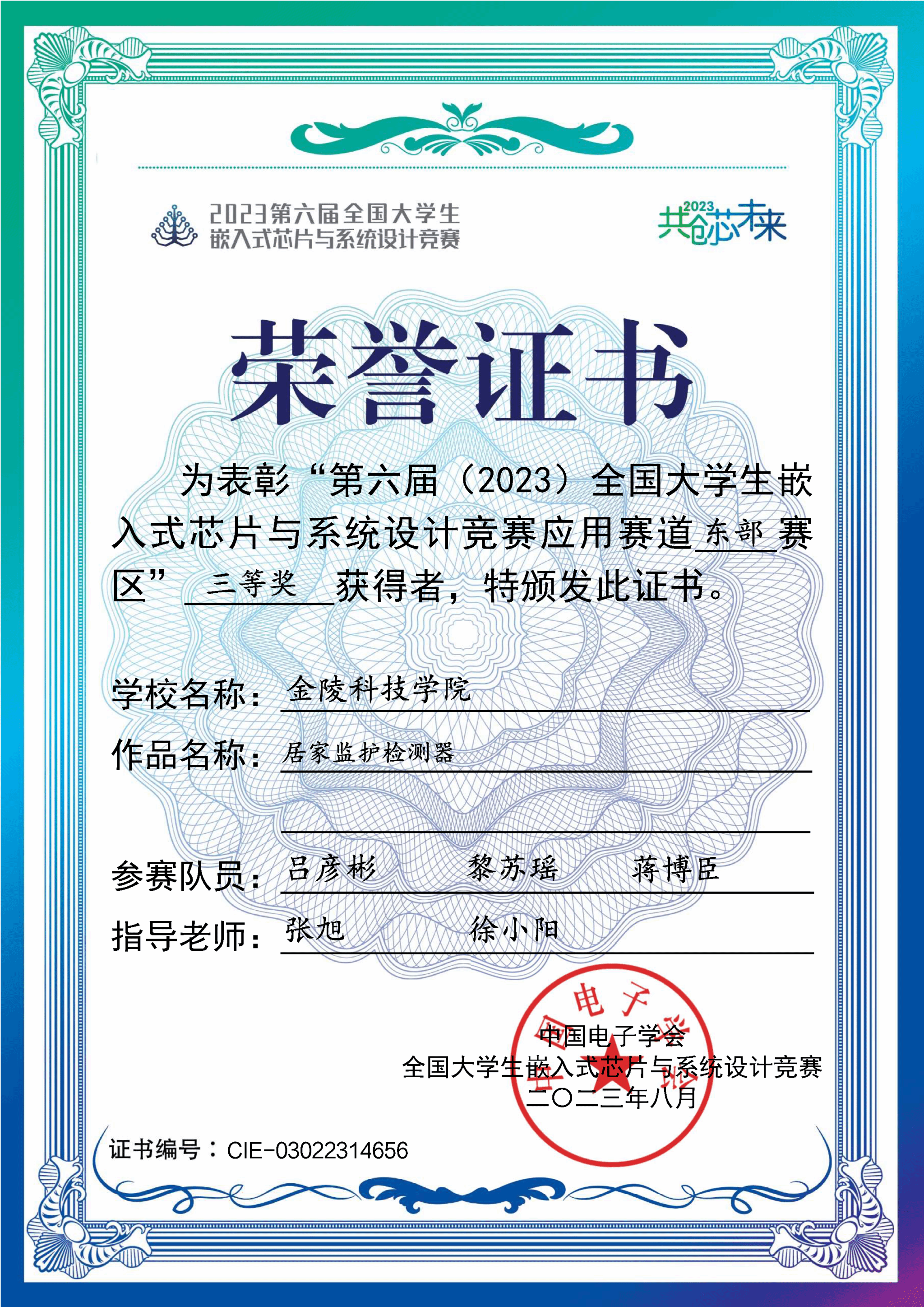 国际教育学院人工智能国际联合实验室成员赵子航、张翔、周祥、蒋博臣和吴昊旻在“2023睿抗机器人开发者大赛(RAICOM)全国总决赛”平安城市竞赛项目中荣获三等奖,蒋博臣荣获第六届(2023)全国大学生嵌入式芯片与系统设计竞赛”东部赛区三等奖。