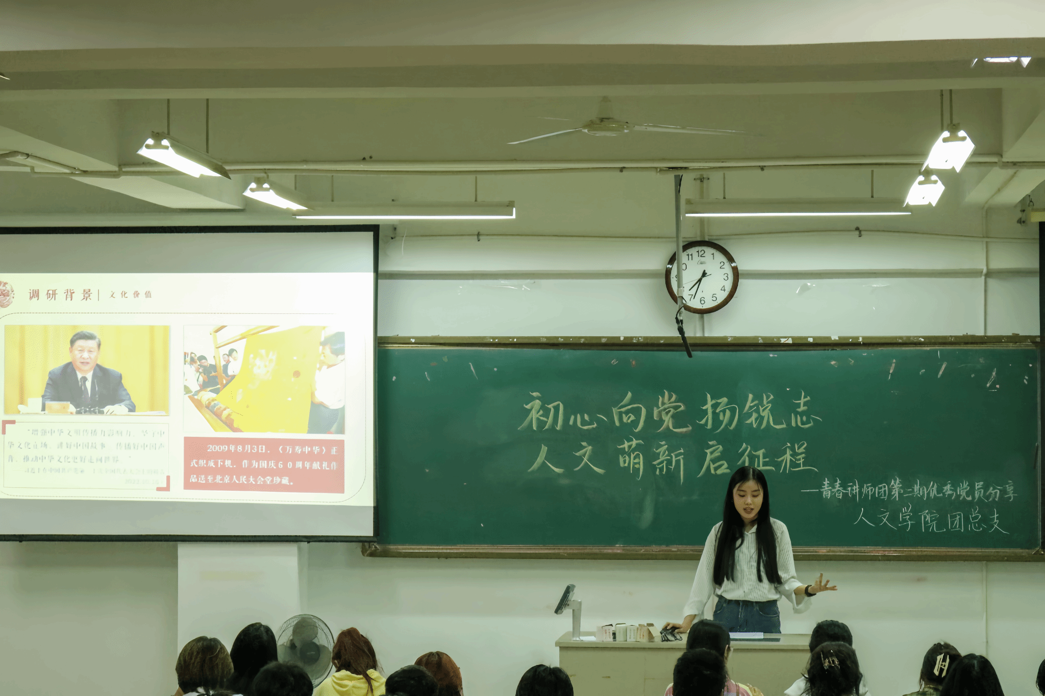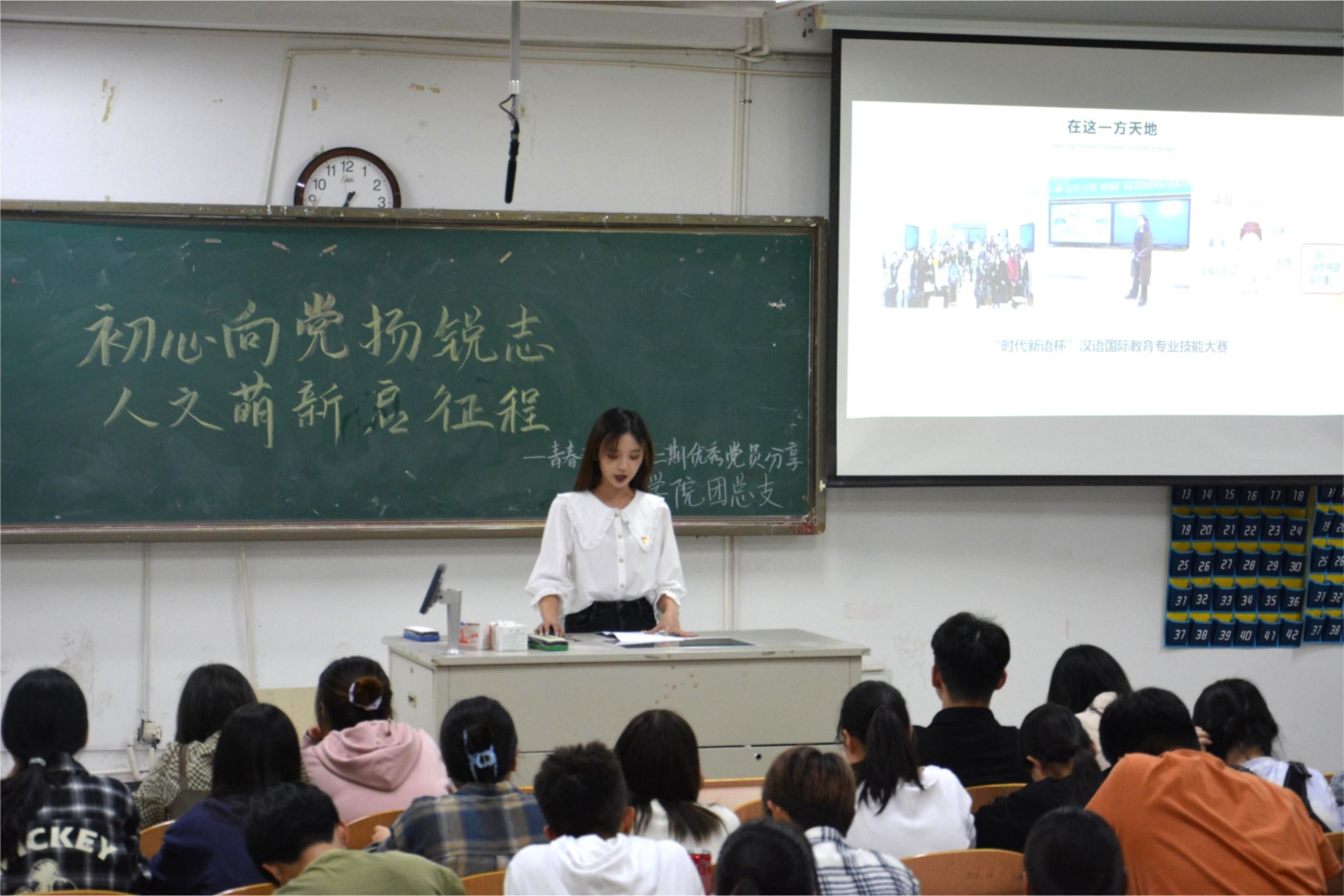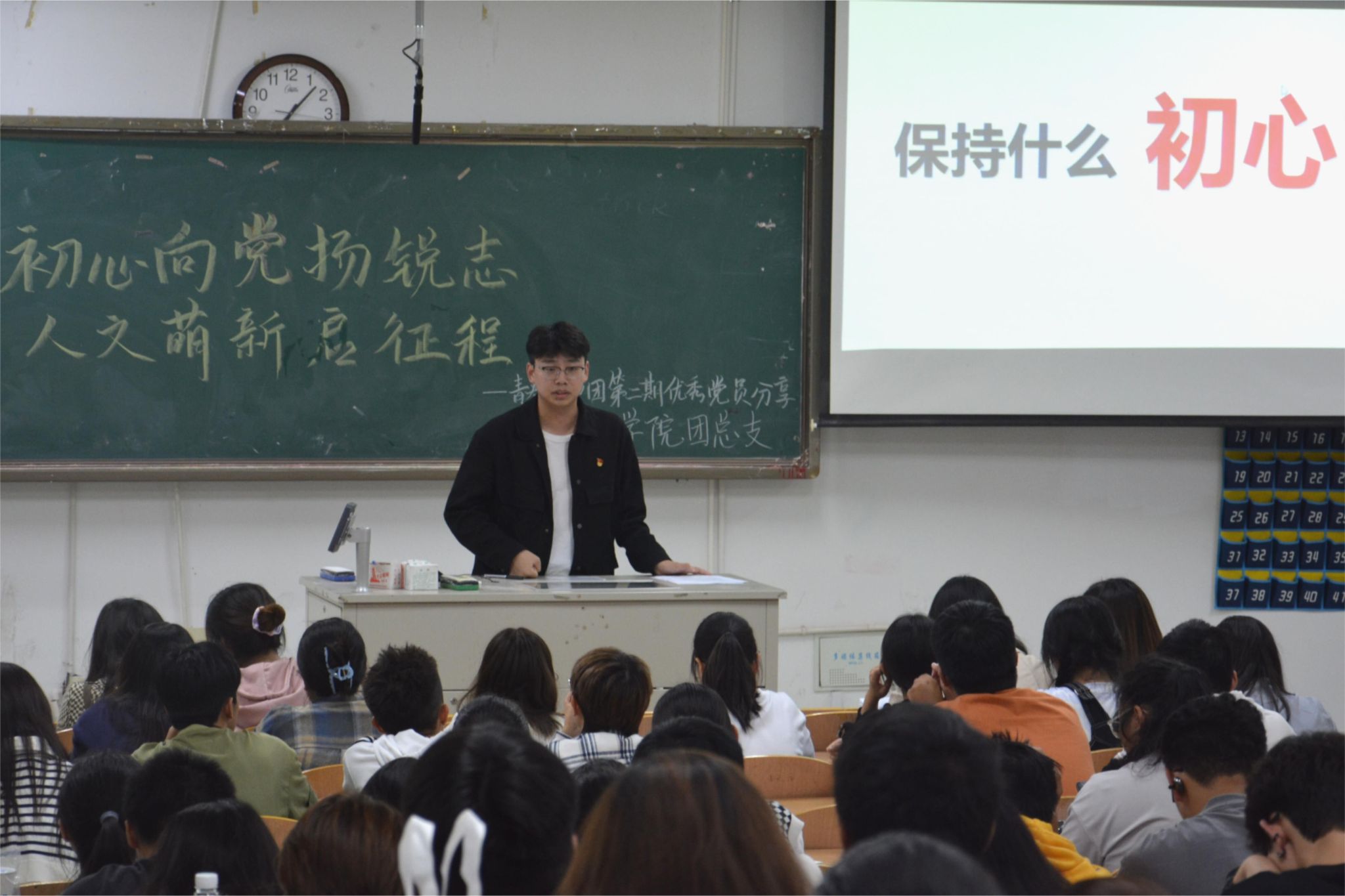 为引领新生们坚定理想信念,强壮精神素养,激发创新潜力, 10月17日晚6:30,人文学院分别在图教楼305、405开展了“初心向党扬锐志,人文萌新起征程”青春讲师团优秀党员经验分享会。人文学院团总支书记高欢欢老师与全体2023级新生参加了分享会。