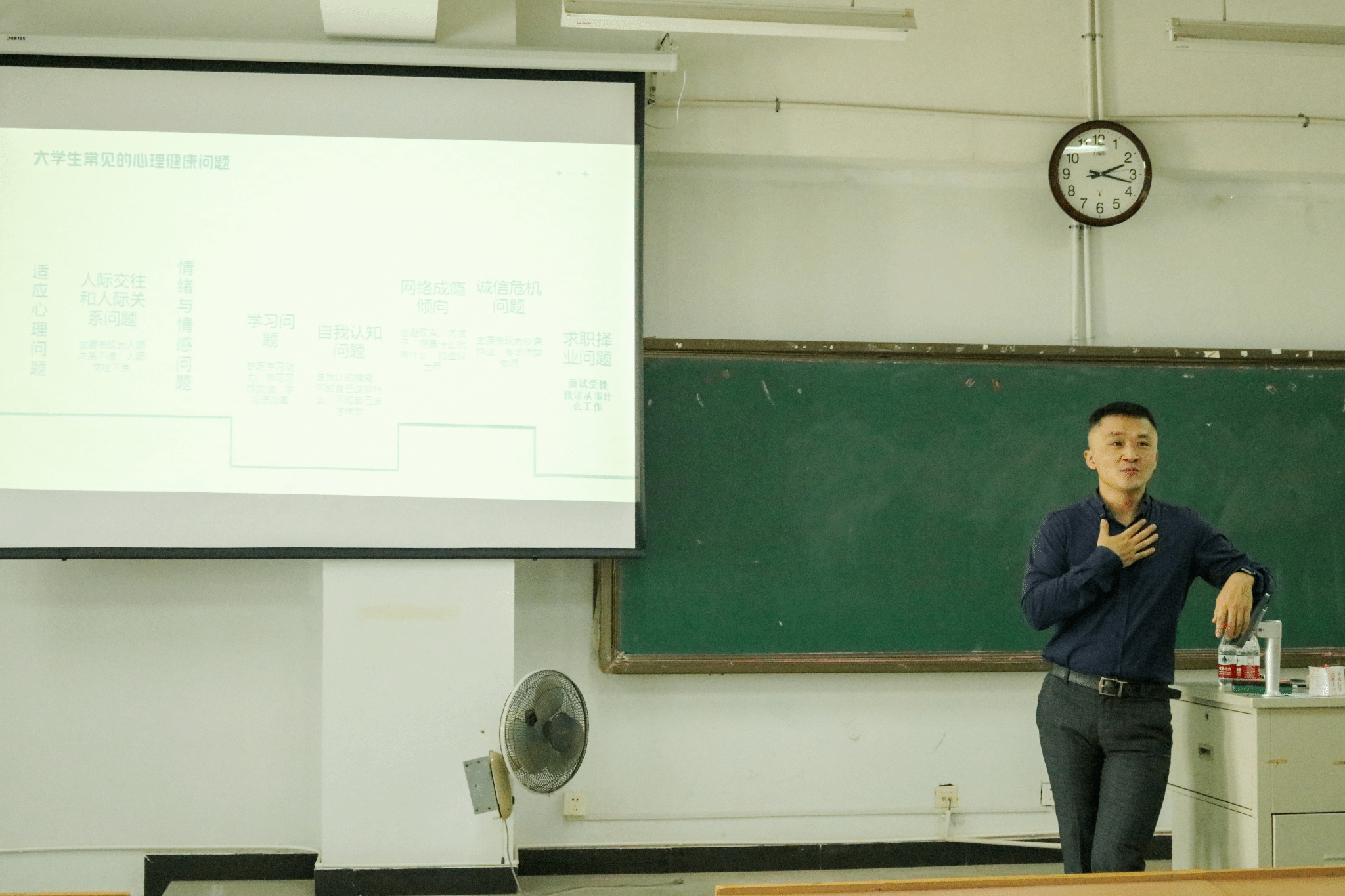 讲座中,王昊飞主任对自己过去学习和工作故事的讲述,在一开始就拉进了和同学们的距离。随后,王主任先是举例说明一些心理异常的表现,并与大家进行了互动。他提出了常见的心理健康问题,并从双相障碍、焦虑障碍、抑郁障碍、社交焦虑障碍、精神病性障碍以及强迫症障碍等六个方面进行具体阐述,结合自己的咨询案例着重分析了当代青年人常见的心理困扰。王主任用他幽默的语言和平和的叙述,带领着人文学子来了一场获益匪浅的心灵科普之旅。活动的最后,王主任就“如何寻求心理咨询或心理治疗”一题进行了详细回答。同时,他鼓励大家要正视心理问题、享受阳光人生,并介绍了相关心理健康咨询的电话,以此帮助大家能更好地交际、生活。