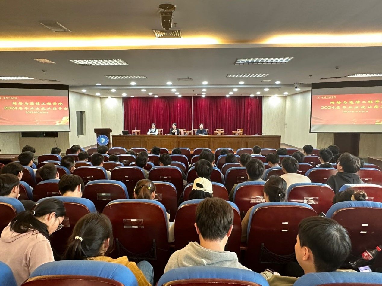 为进一步促进2024届毕业生就业,10月26日,网络与通信工程学院在图书馆第二报告厅召开2024届毕业生就业指导会。本次会议特邀请到了智一生、查浩毅、陈伟建、余冠廷四名优秀校友介绍工作经验,院党委书记陈健,副书记董宇,全体2024届毕业生参会,会议由学工办主任郑灵敏老师主持。