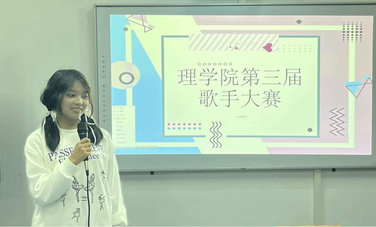 歌手大赛由21级周洁和22级高子健主持。本次歌手大赛活动形式新颖、内容丰富,不仅有参赛选手们舞台表演,还有猜歌和抽奖等特色环节。在主持人宣布比赛开始时,参赛选手们按抽签顺序依次上台,一展歌喉。只听:《两只老虎》带我们重回童年时光,重温儿时的记忆;《万千花蕊慈母悲哀》让我们感受到母亲慈爱和对儿女的牵挂;《十年》、《红玫瑰》让我们听到了不同的矛盾与遗憾……《天外来物》的开口跪,将比赛推至高潮,同学们热情地挥动荧光棒为选手欢呼。在中间的抽奖、猜歌环节中,同学们跃跃欲试,积极互动,上台猜歌名,你追我赶,扫描二维码参与活动,赢得奖品。最终,通过同学们线上投票,共评选出一等奖1名、二等奖2名和三等奖3名和优秀奖若干。同学们纷纷表示,无论结果如何,他们都是青春的孤勇者!