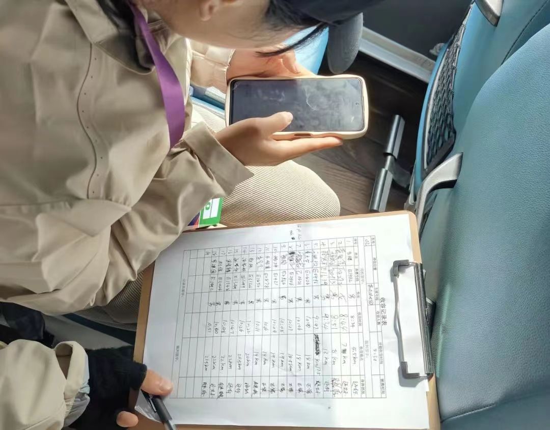 收容车上的志愿者们实时关注着各位选手的比赛状况,并及时帮助体力不支的选手,并对他们表示鼓励,同时,志愿者会记录被收容的选手的比赛项目、号码性别、收容地点等,保障选手的安全,比赛的正常进行。
