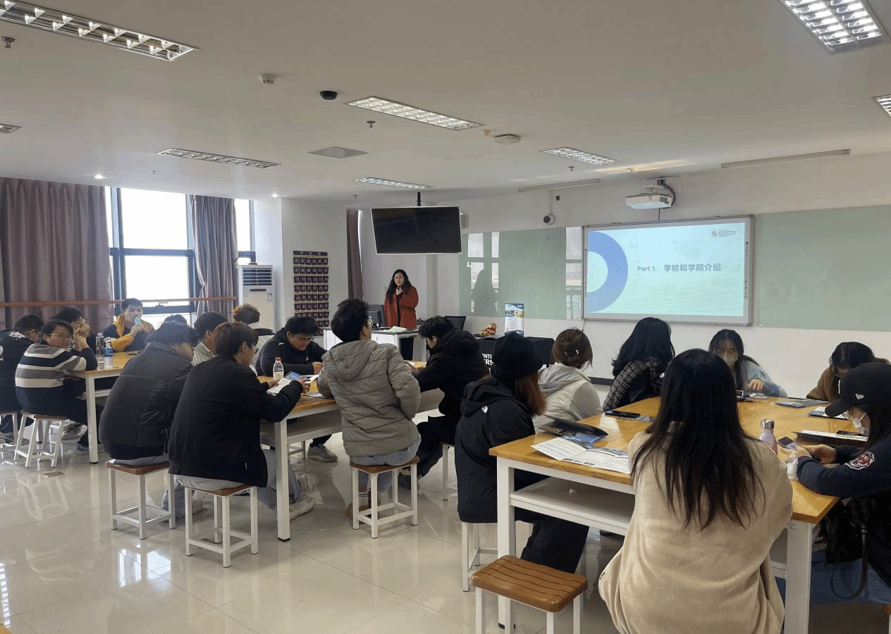 为了让中英通信工程项目学生更好地了解第二阶段跨境教育,帮助学生尽早做好第四年在德蒙福特大学(简称DMU)的学业规划,国际教育学院于11月24日在科技楼三号楼517教室举办了中英通信工程项目交流会活动。此次活动特别邀请德蒙福特大学中国办公室Sarah老师与G21通信工程班学生开展留学交流。