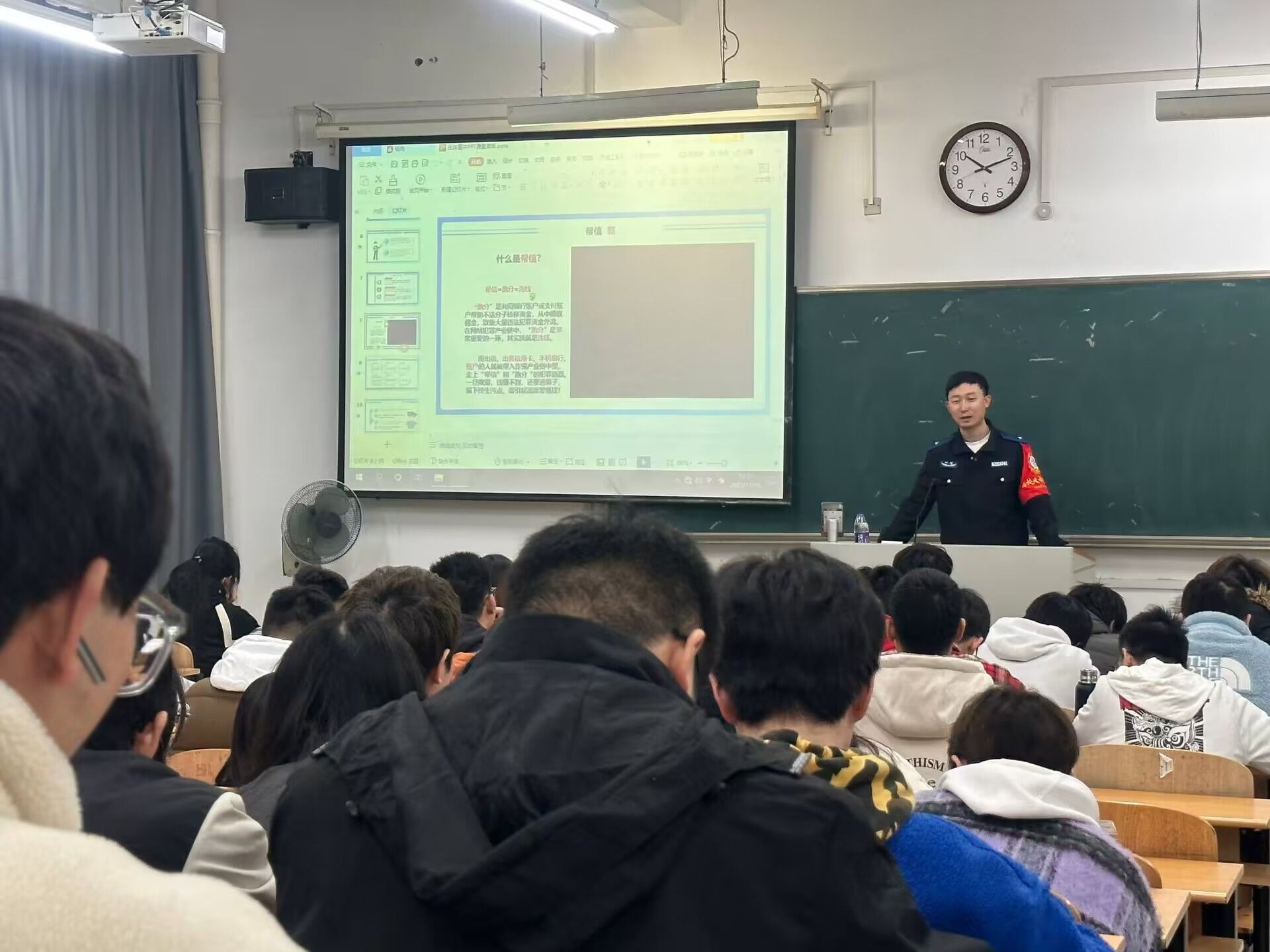 在讲座活动中,张警官讲解了电信诈骗的形式以及当前针对大学生群体高发的电诈类型。他还从自身工作经验出发,向学生们普及了如何识别、防范电信网络诈骗的技巧,分享有效防范措施,帮助学生们提高警惕防范意识。