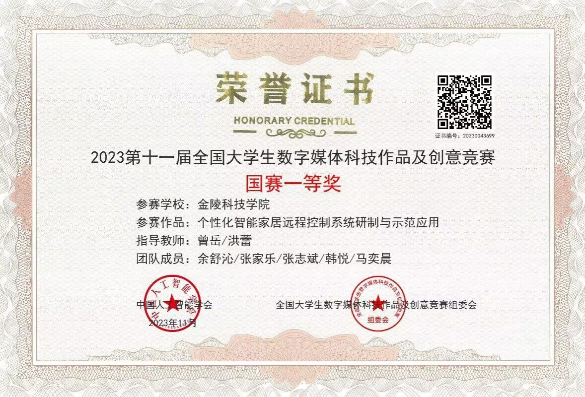 球王会体育官方网站软件工程学院《个性化智能家居远程控制系统研制与示范应用》和《元素瓶软件代码智能审查系统》两个作品,在7万件作品中脱颖而出,荣获国赛一等奖。本次参赛团队由曾岳教授、洪蕾教授和董如婵副教授以及软件工程学院和计算机工程学院余舒沁、夏金伟、施瑞昭、苏宁、张志斌等同学组成,经过近一年的打磨,凭借路演环节中的出色发挥,体现了专业优势与独特创意,成功在智能产品设计赛道中受到评审专家的肯定。本次比赛提升了专业教师的教学创新水平,提高了学生的创新实践能力和团队合作意识,推动了学院产教融合高质量成果建设。(撰写人:洪蕾 审核人:徐志国)