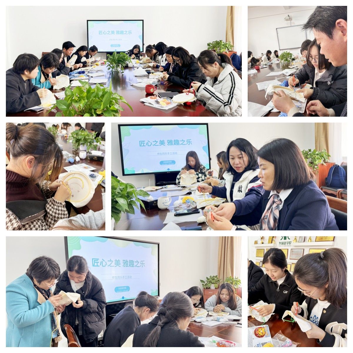 为缓解学生期末备考的紧张情绪,增进师生感情,营造和谐温馨的校园氛围,11月29日下午,外国语学院在博学楼8210会议室举办了主题为“匠心之美 雅趣之乐”的师生同乐手工活动。学院党总支部书记李星、副院长李凤和18名师生一起参加了活动。