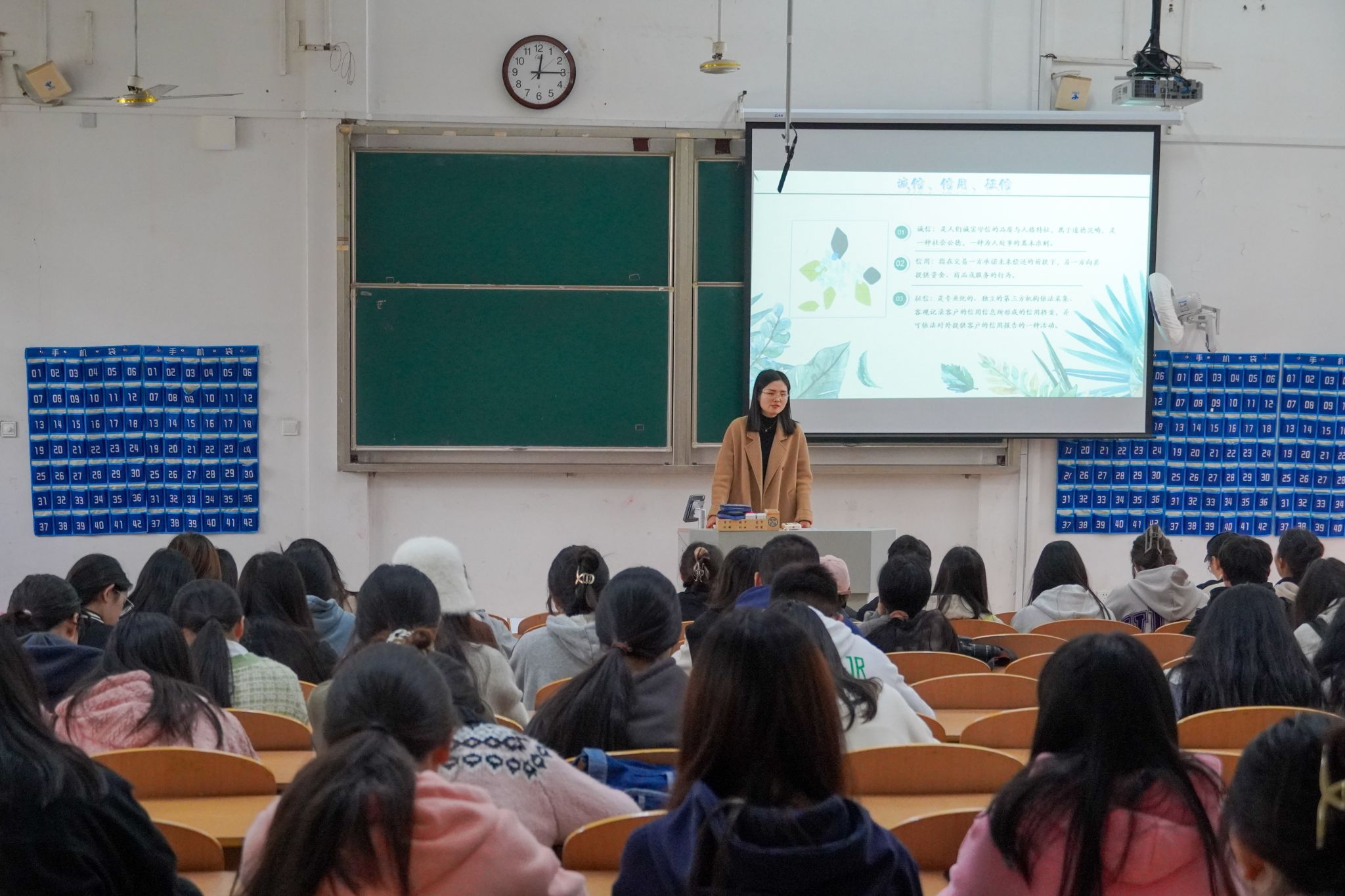 会上,王珊老师首先向同学们讲述了诚信的内涵及其重要性。诚信既要内诚于心,又要外信于人,也就是对自己、对他人诚实守信。其次,她进一步宣传了国家助学贷款、国家助学金等国家资助政策,增强学生的诚信意识和感恩意识,让学生们更加直观深入地感受到党和国家的关爱。同时,引导困难学生树立正确的消费观和价值观,崇尚节俭,理性消费,杜绝不符合家庭经济收入水平的高消费等不当行为。最后,她希望同学们恪守诚实守信的基本道德准则,培养自立自强的优良品质,养成良好的学习思维习惯,树立积极向上的生活态度,砥砺奋进,笃志前行。