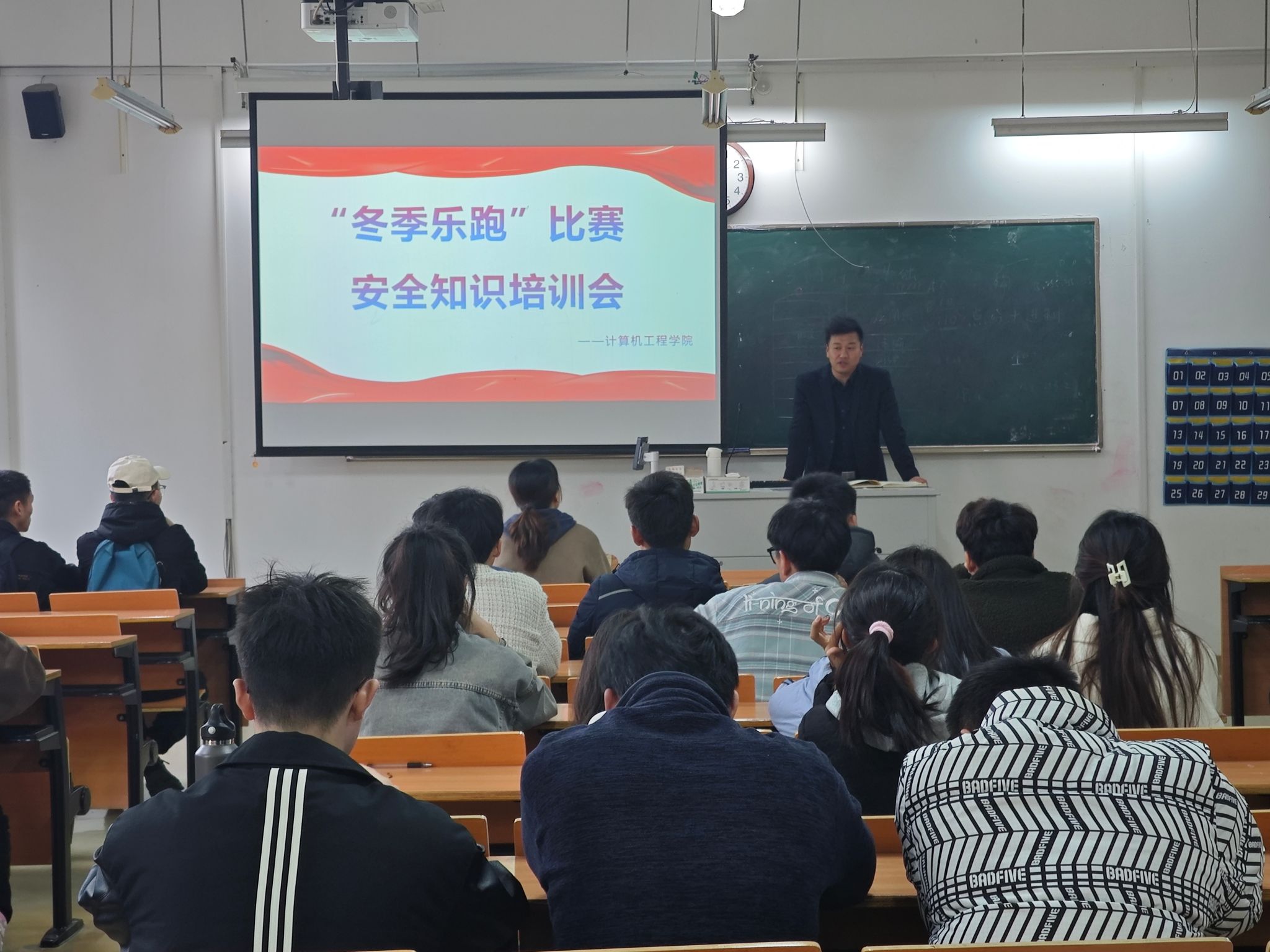 为进一步提升我院参赛远动员的安全意识,防范各种意外情况的发生,计算机工程学院于11月30日中午,在北区教学楼1206教室举行了冬季乐跑运动员安全培训会。学院党委副书记张昊、学工办副主任胡鸣老师、全体参赛运动员和部分志愿者代表参加了本次会议。