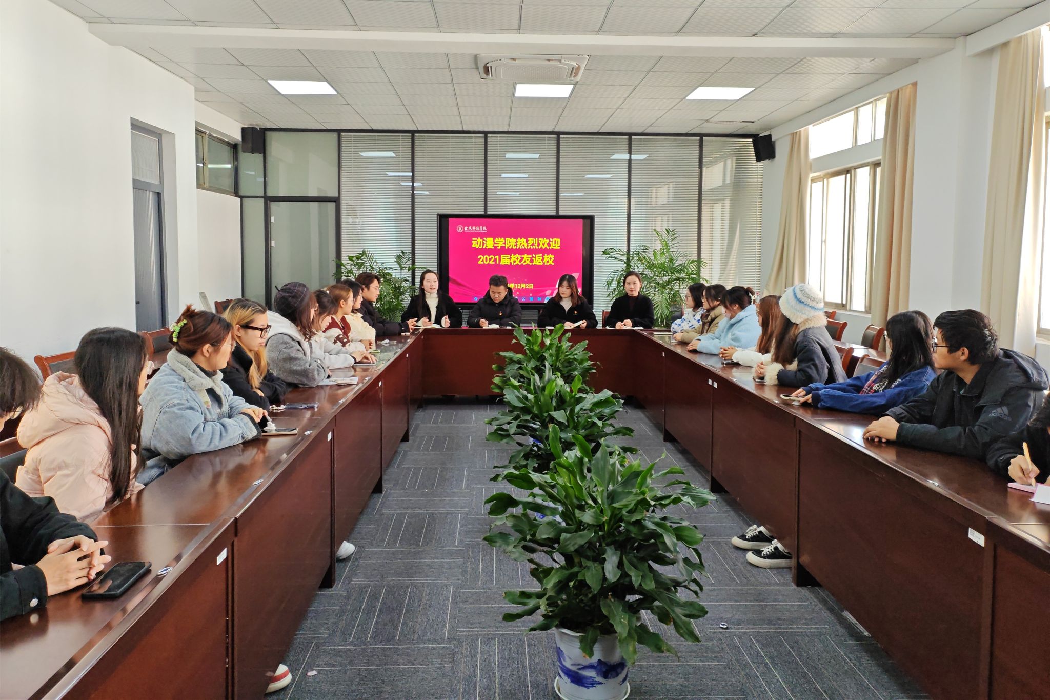 12月2日,动漫学院举办了2021届校友返校活动。学院党总支部书记赵宁,院长王贤波,副书记副院长匡才远,2021届毕业班辅导员王月恒老师,辅导员聂钰石、杨兰香老师及2021届校友参加了活动。