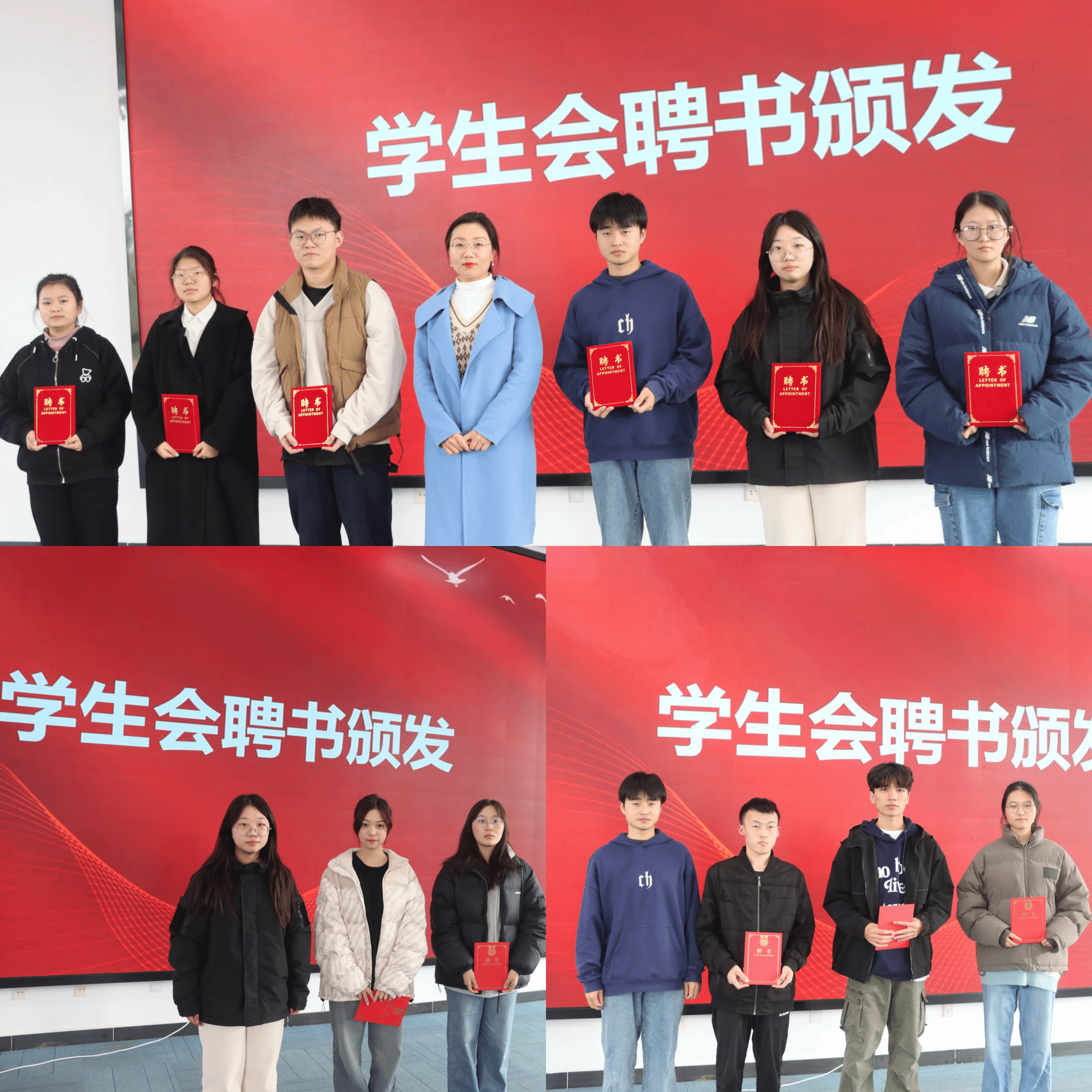 聘书办法仪式上,孙宏宣读了《理学院第一届学生会干部、干事聘任决定》,雍海龙为理学院第一届学生会主席团成员颁发了聘书,孙宏为各部门部长颁发了聘书,各部长为部门成员颁发了聘书。这份聘书,不仅是一份荣誉,更是一份认可、一份责任。学院希望通过这份聘书,激发大家为学生会发展贡献自己的力量。
