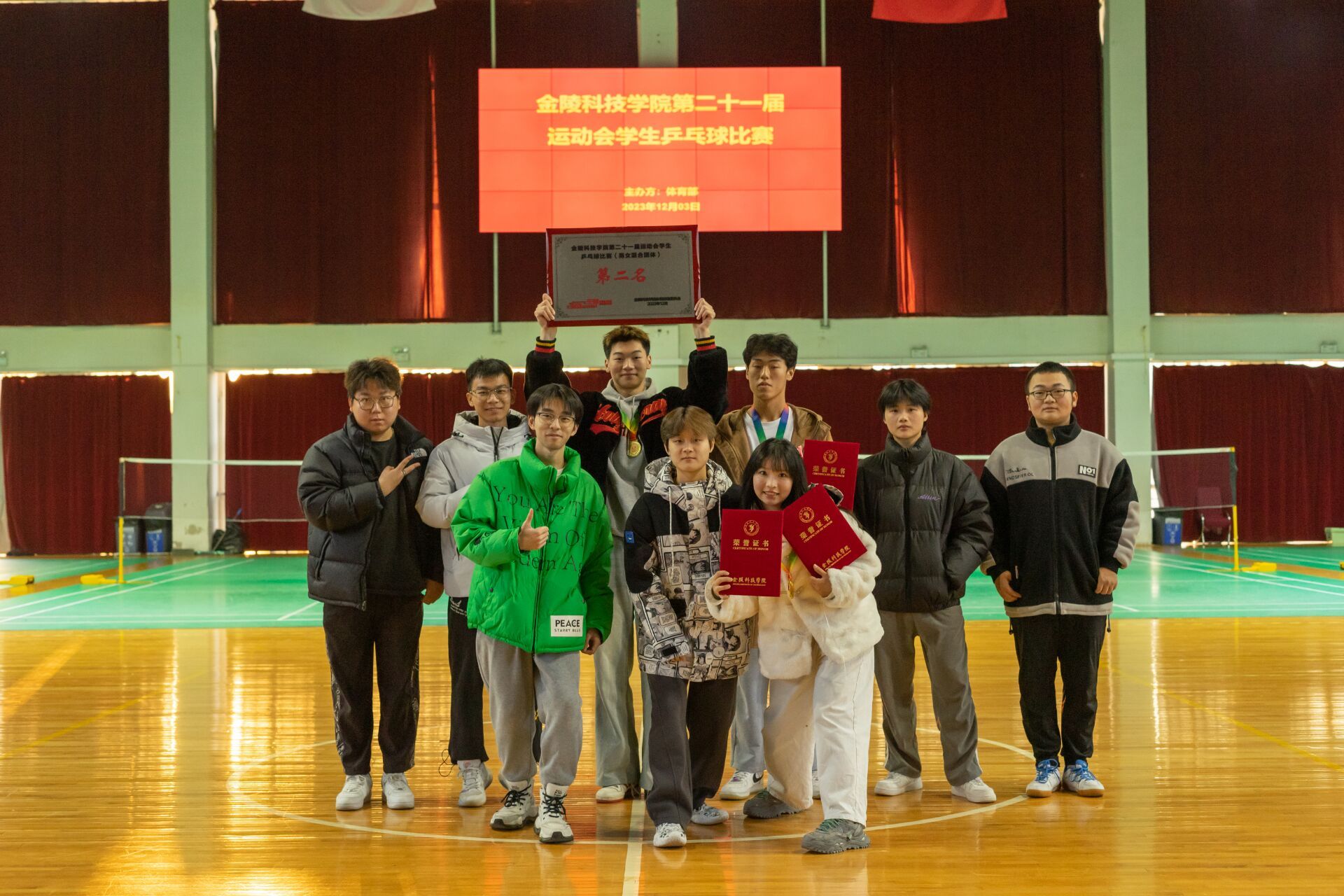 12月3日,球王会第二十一届运动会学生乒乓球比赛在江宁校区体育馆举行。我院乒乓球代表队在本次男女混合团体赛中积极准备,沉着应战,最终代表学院获得团体比赛亚军。