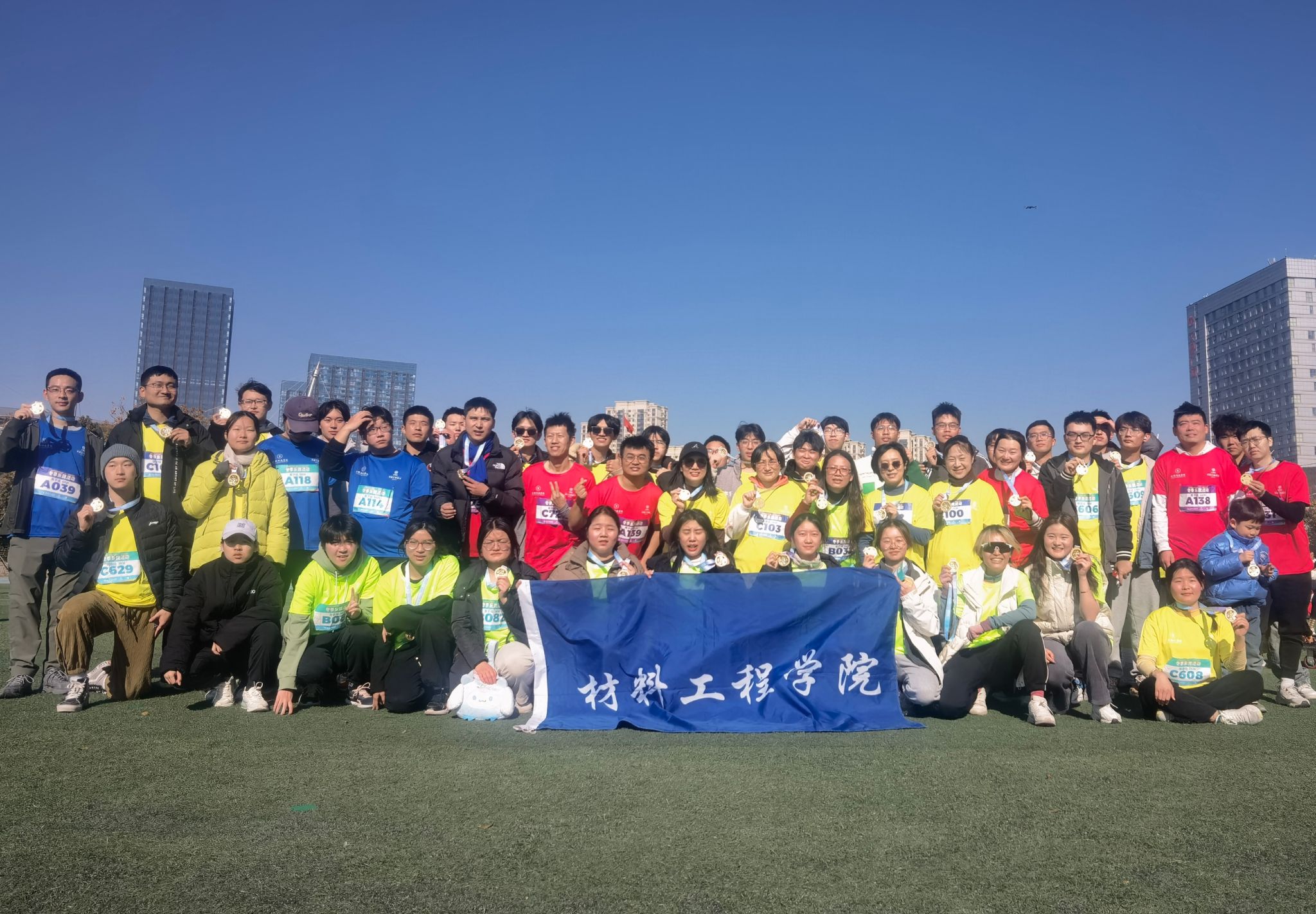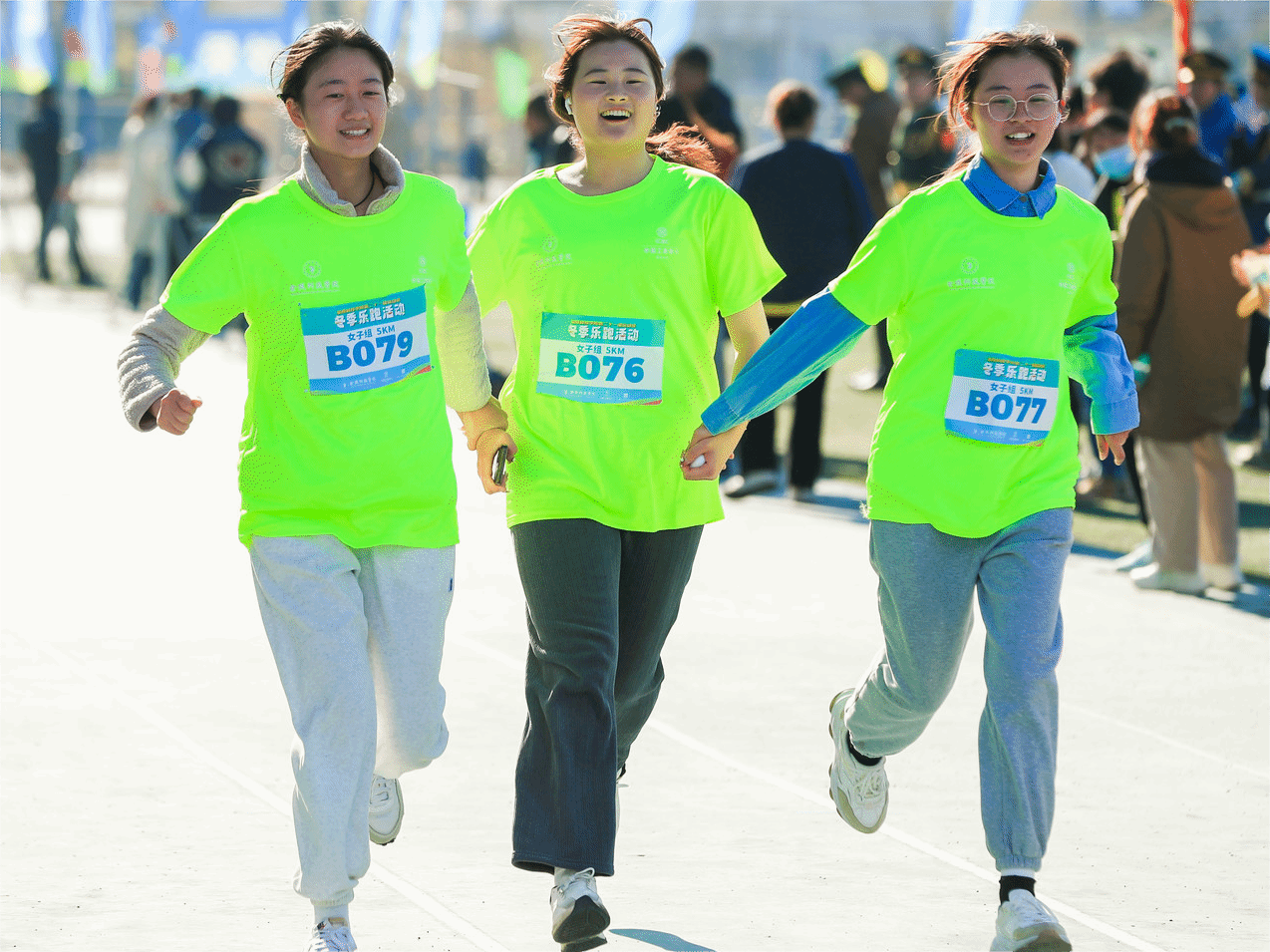 比赛现场气氛热烈,参赛师生们活力四射、激情高涨。随着一声令下,选手们佩戴着计时芯片迅速冲出起跑线,冬日的寒风虽然凛冽,但乐跑者们的热情和斗志却更加高昂,他们在寒风中挥洒汗水,展现出坚韧不拔的毅力。与此同时,我院的志愿者们在各个医疗点和供水点等便利点提供热情服务,帮助参赛者们都能在安全的前提下享受运动的乐趣。比赛结束后,我院师生取得较好成绩:01视光班校友取得校友女子组第一名,教工女子组(45岁以下)第二名,学生男子组第十名,充分展现了材料学院师生的风采与实力。