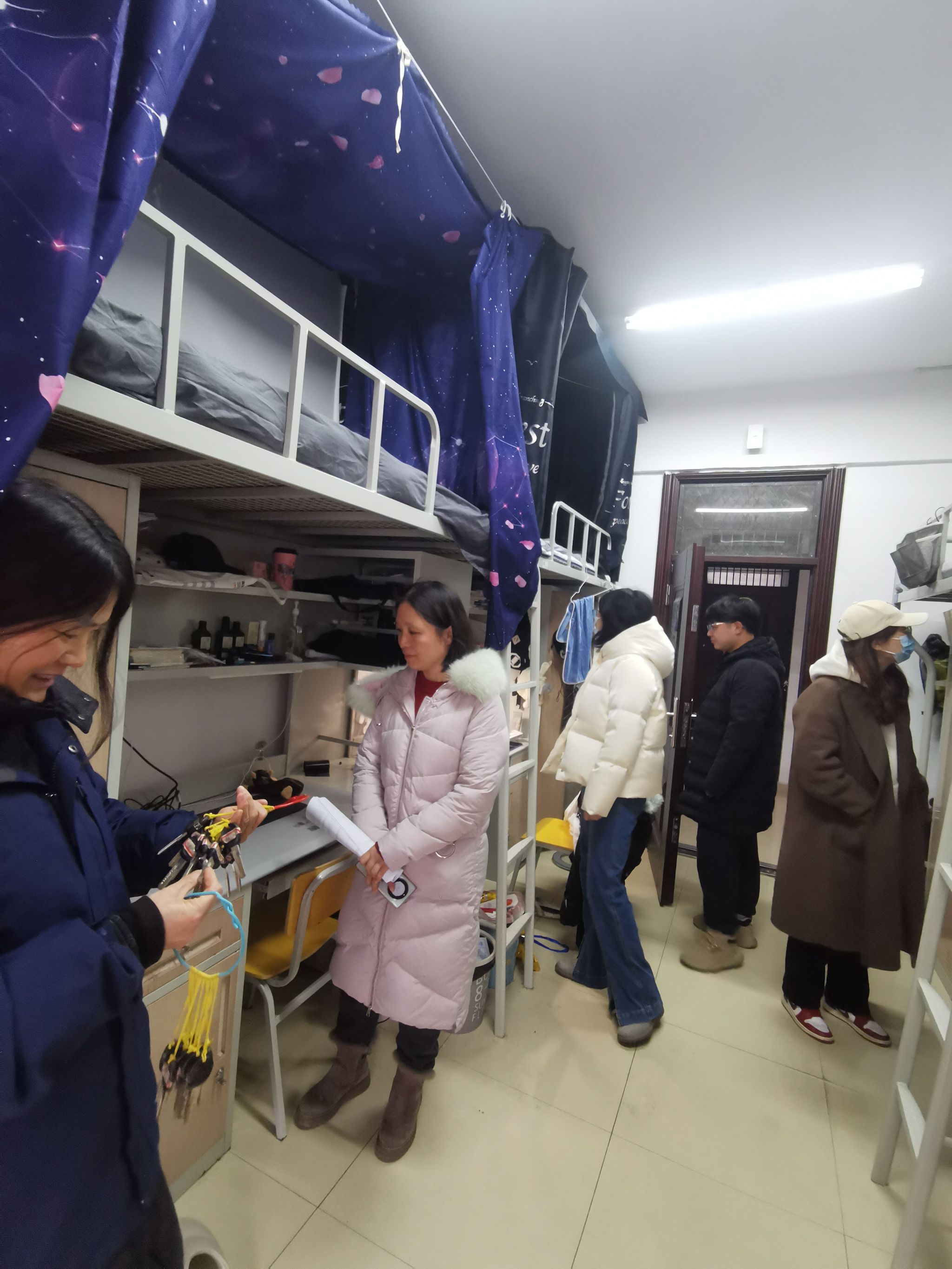 新年伊始、新学期开学,电子信息工程学院学生顺利返校。为深入了解学生新学期学习生活情况,2月26日开课第一天,电信学院党委副书记陈智慧及全体辅导员深入宿舍开展宿舍安全及卫生走访检查。
