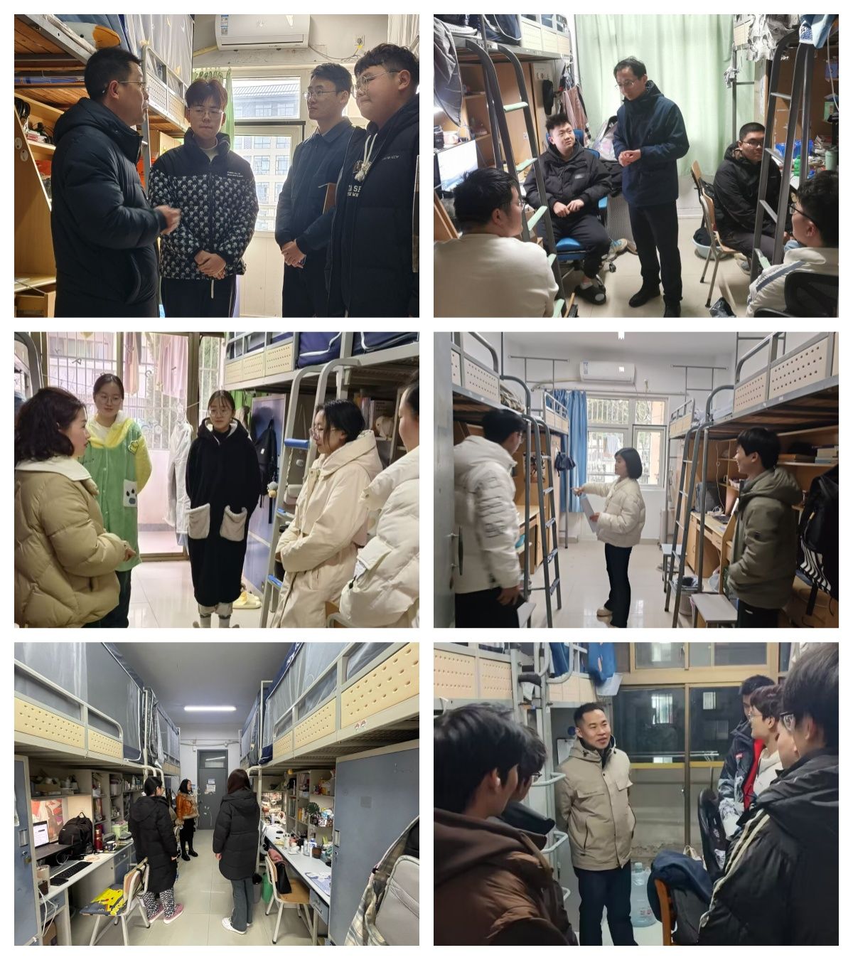 活动中,领导和老师们检查了学生返校情况,认真询问了同学们的假期生活与新学期课程学习安排情况,了解学生思想动态;对宿舍安全和卫生进行全面检查,重点检查了用电、用水的安全并对可能使用的大功率违规电器等进行了仔细排查。徐斌书记强调宿舍成员要友爱互助,重视消防安全、寝室卫生,树立优良寝风,要尽快投入学习,适应新学期生活。