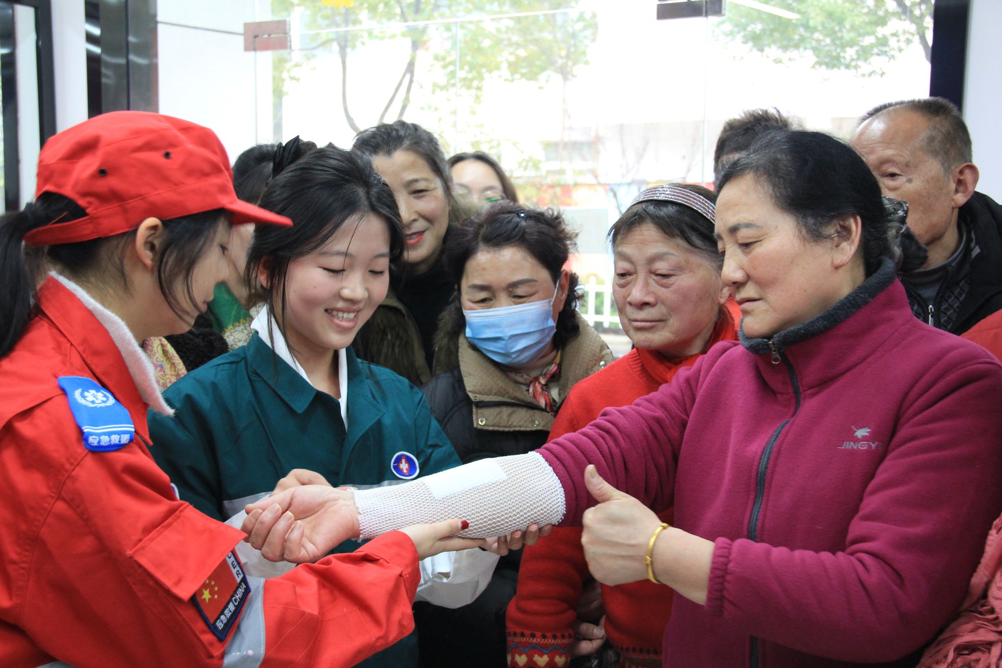 他们利用自己的巧思妙想,结合在学校做实验,用能弯曲折叠的铝板,结合海绵等材料制作了快速裁剪长度的骨折夹板,针对低血糖补糖不便而制作的“快速补糖冰珠”和简单易用透气性好的网状弹力绷带。这些“秘密武器”极大的方便了“患者”,得到了现场老人们的一致称赞!
