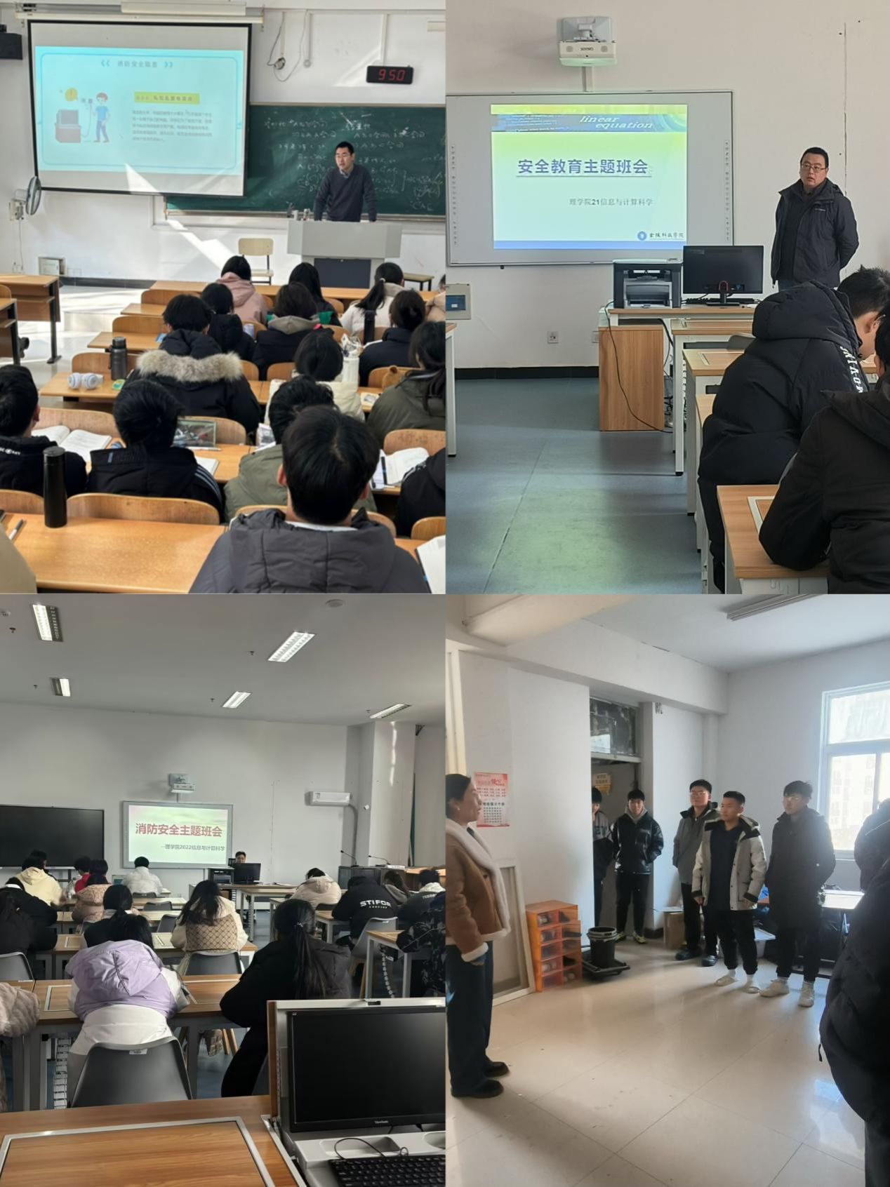 为进一步增强学生安全防范意识和自我保护能力,全力筑牢安全防线,2月28日-3月6日,理学院重点围绕消防安全、交通安全、防范电信网络诈骗、心理健康等方面,开展了安全教育主题班会和宿舍走访等安全教育系列活动,加强安全教育,杜绝安全隐患。