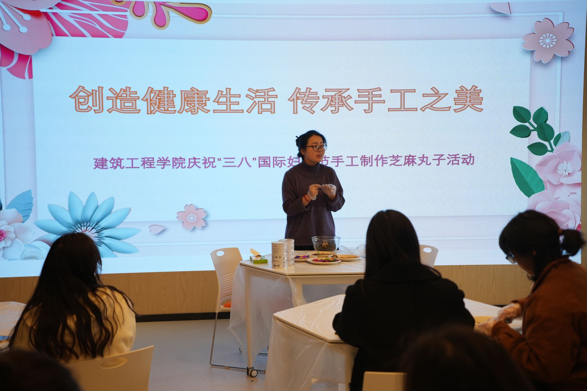 春风拂面,建筑工程学院将劳动教育融入庆祝“三八”国际妇女节,组织师生开展了“创造健康生活,传承手工之美”手工制作芝麻丸子活动。此次活动由学院书记杨如丽主持,学院女教师和女学生代表参加。