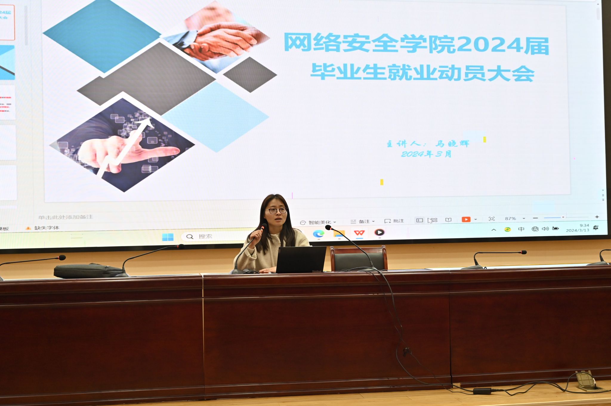 为落实2024届毕业生就业工作部署,帮助毕业生了解当前就业形势,切实促进毕业生高质量就业,3月13日上午, 网安学院在科技楼报告厅召开2024届毕业生就业指导大会。网安学院全体辅导员及毕业班班主任出席本次大会,学院全体毕业生参加了本次大会。