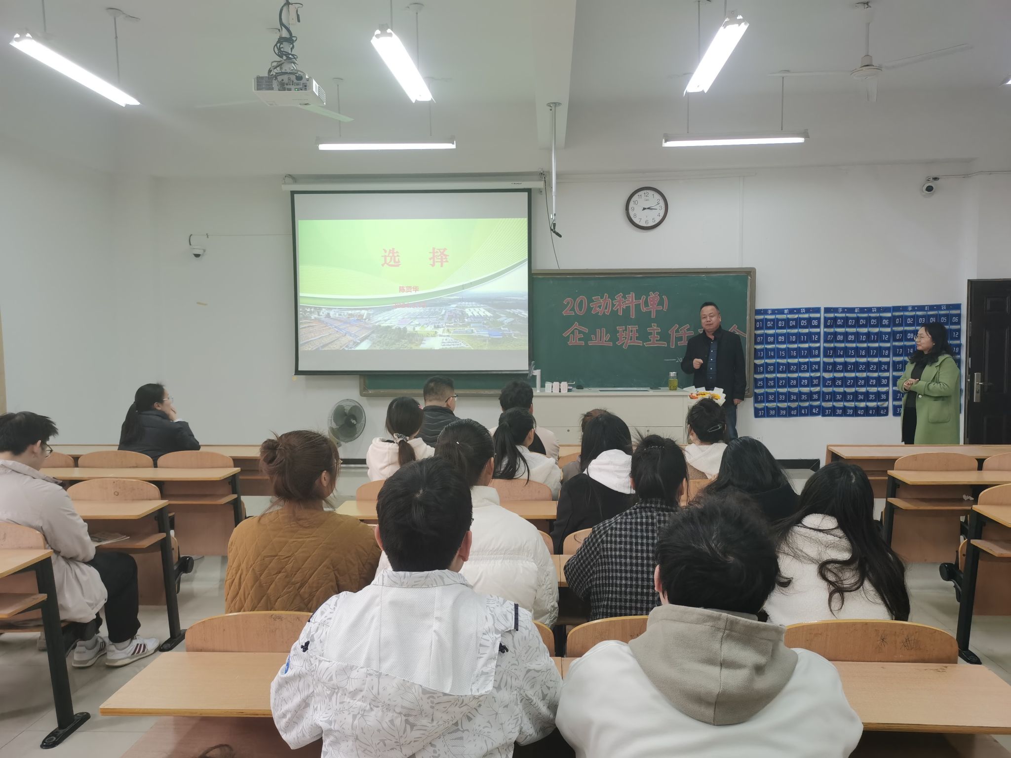 3月13日下午,为了进一步帮助学生了解就业形势、做好职业生涯规划, 20动物科学(单)企业班主任——南京禄口禽业发展有限公司陈贤华总经理、21食品科学与工程班企业班主任——南京工业大学工业生物技术研究所副所长武红丽来校开展主题班会,院领导热情接待,辅导员、班主任和两个班的全体同学参加活动。