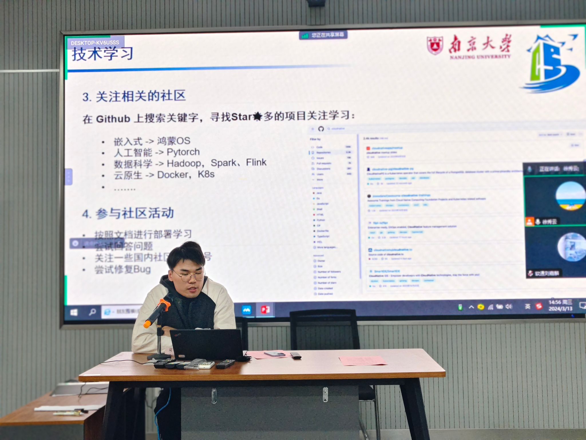 开放原子开源基金会校园行——“2024开源春耕计划”旨在激发高校开源社团的创新精神,推动开源技术在校园内的普及与实践。球王会开放原子开源社团积极响应,并于3月13日,在软件工程学院2-311举行了“2024开源春耕计划——开源技术沙龙”。本次活动软件工程学院邀请了讯方科技的高级工程师李欣、软通动力江苏区域总监王健以及南京大学计算机学院的王问骁学长到校给同学们分享开源技术及竞赛经验,软件工程学院副院长徐永华、软件工程系主任洪蕾及相关指导教师参加了本次活动。