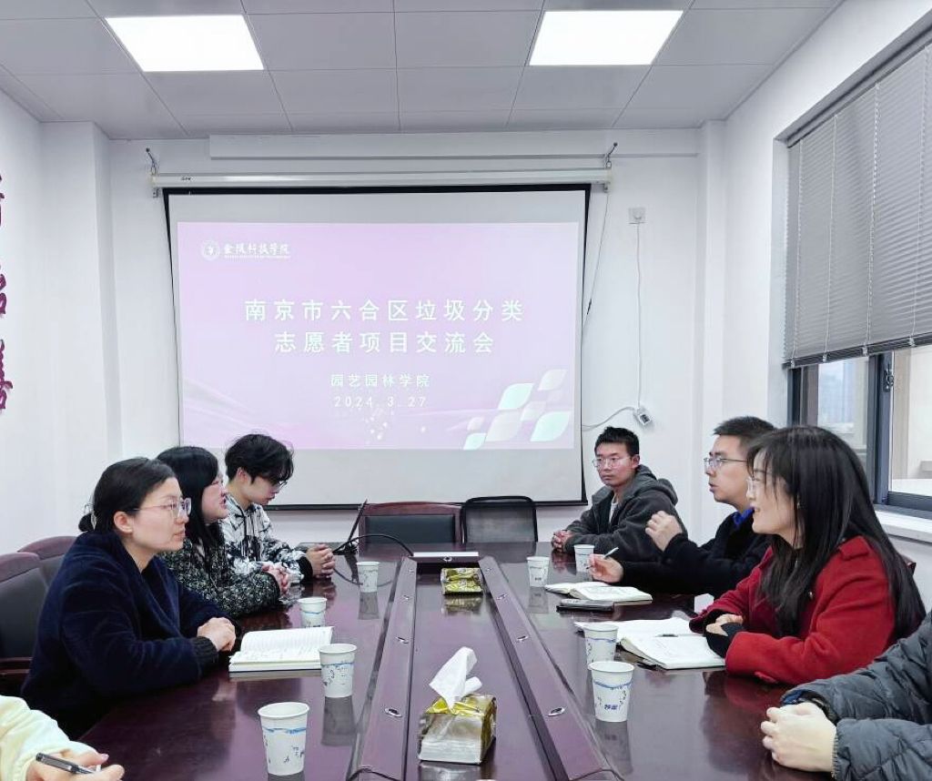 3月27日上午,园艺园林学院在农科北楼会议室召开了南京市六合区垃圾分类志愿者项目交流会。会议由院党委副书记甘黎明主持,院学工办主任、团总支书记徐敏、南京市六合区城市管理局相关负责人、垃圾分类志愿者参加会议。