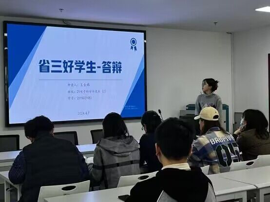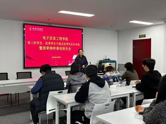 4月8日,电子信息工程学院于科技楼4号楼304-2召开省三好学生、优秀学生干部及优秀毕业生评选暨朋辈榜样事迹报告会。学院党委副书记陈智慧及全体辅导员出席了活动。