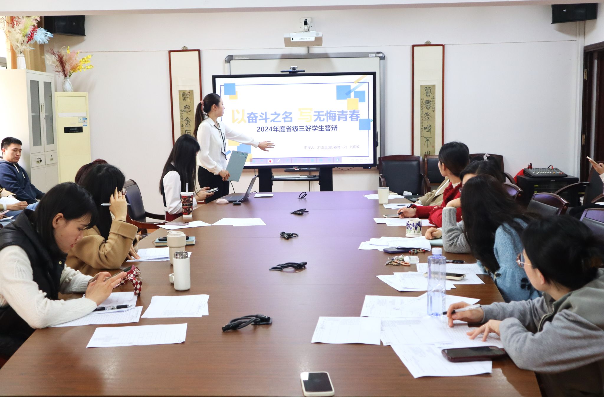 董宇副书记对候选人、候选班级的申报答辩表示充分肯定,她鼓励同学们展示自我,互相学习,共同进步。希望大家以此为契机,在平时的学习工作生活中,充分发挥模范带头作用,脚踏实地、不懈努力、共同进步,为学院建设优良学风贡献自己的力量!经过紧张而激烈的角逐,最终产生了若干名省级三好学生、省级优秀学生干部及省级优秀毕业生推荐人选和先进班集体推荐。这些优秀学子不仅为学院争得了荣誉,更为广大学子树立了榜样。
