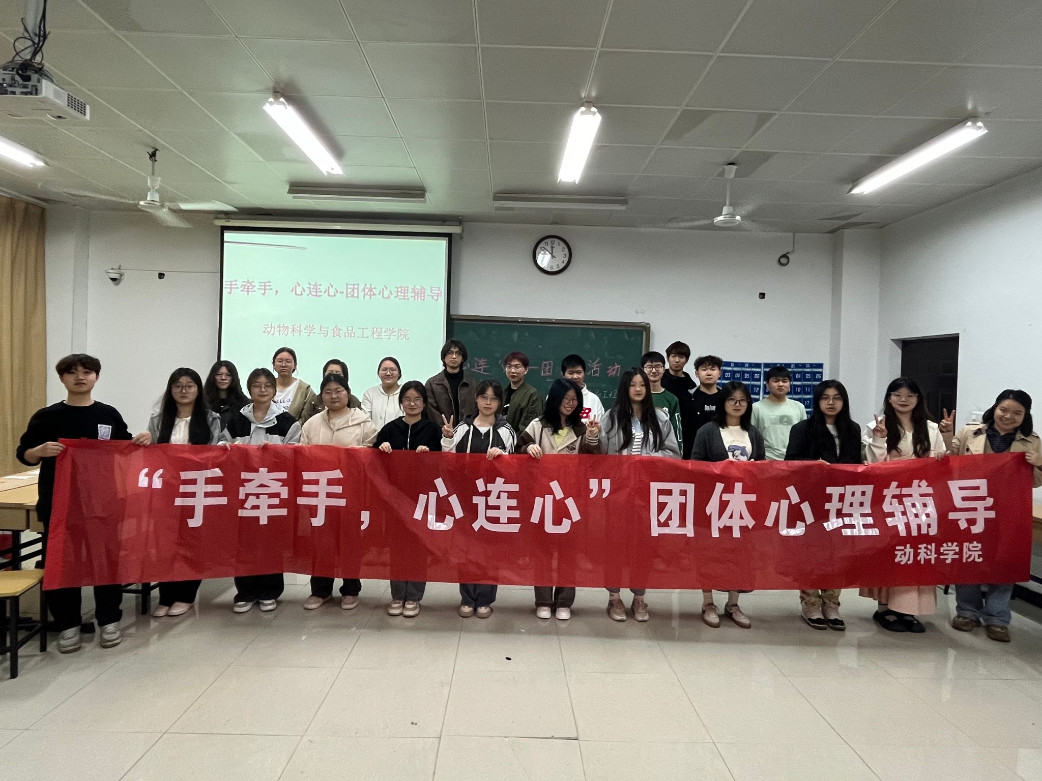 为增强学生的沟通、社交能力,4月17日下午,动物科学与食品工程学院在图教楼B509开展主题为“手牵手,心连心”团体心理辅导。本次活动由学院辅导员周秀丽组织开展,23级群体心理委员和部分同学参与了本次活动。